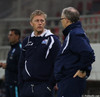 Þjóðsöngvarnir búnir. Spilaðir af krafti. Allt að verða klárt. Blaðamaðurinn sem reykir vindil ofan í hálsmálið á mér mætti drepa í. Þá værum við í toppmálum.