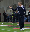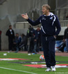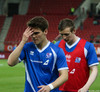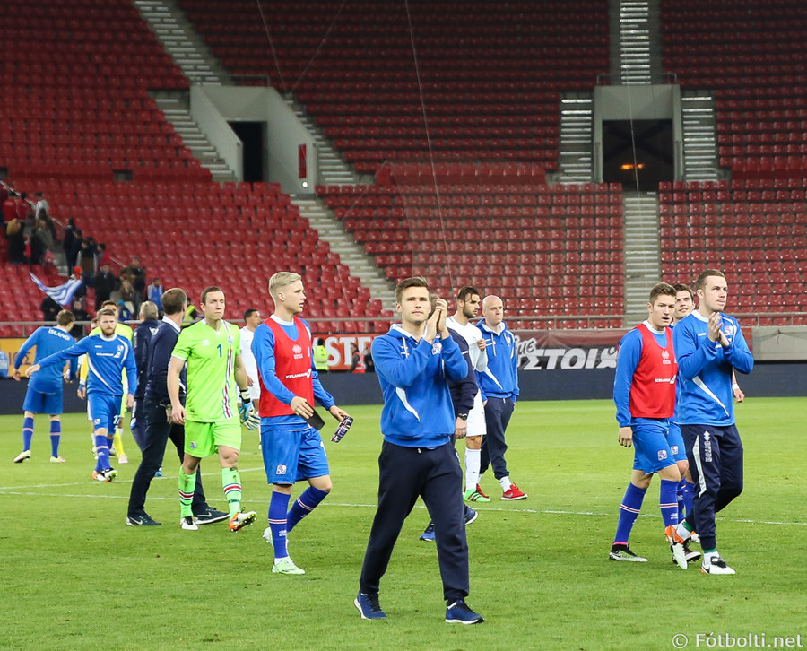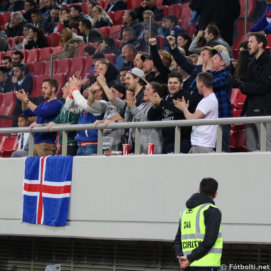20 manna hópur af Íslendingum lætur í sér heyra núna. Áhorfendurnir eins og fyrr segir fáir og því heyrast köll þeira vel.