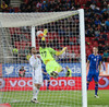 Skorar af miklu öryggi. 1-0 Grikkland.