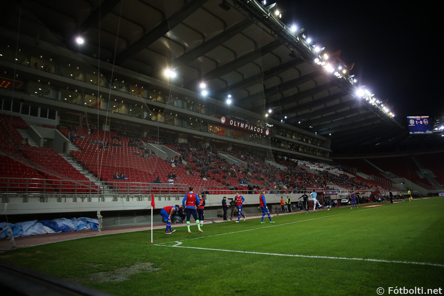 Það verða ekki margir á Karaiskakis leikvanginum þegar leikurinn fer fram í dag. Leikvangurinn er heimavöllur Olympiakos en þar eru sæti fyrir rúmlega 33 þúsund manns.