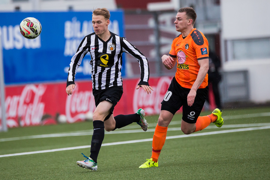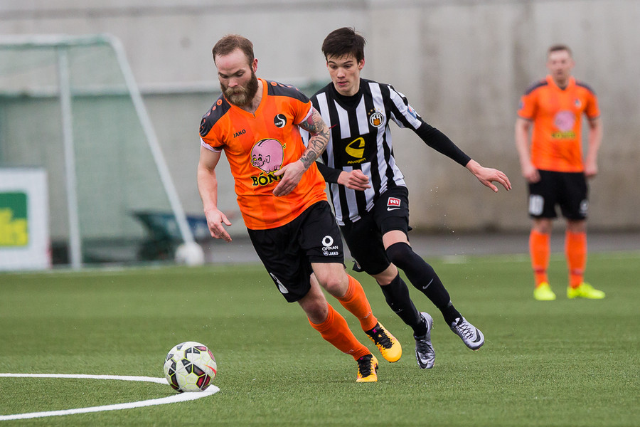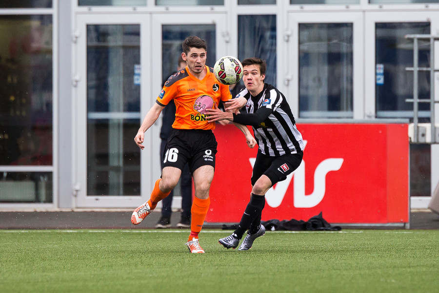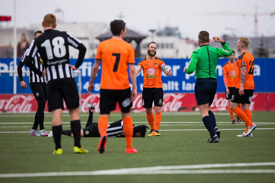 Ásgeir Börkur og Morten Beck fara öxl í ölx. Daninn endar einhverstaðar langt útaf vellinum. Eitthvað sem segir mér að hann hafi ekki búist við þessari niðurstöðu í baráttunni.