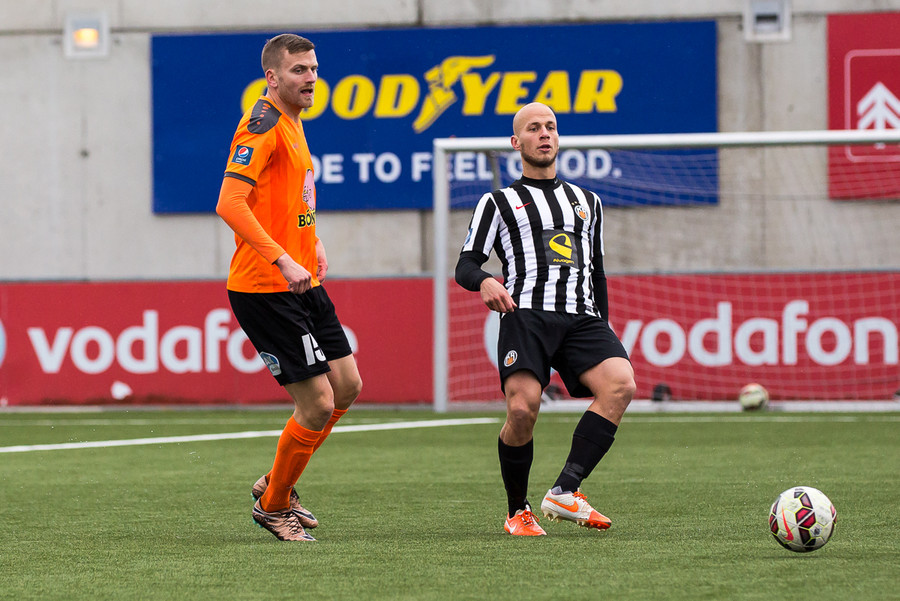 Emil kemst einn gegn Stefáni eftir að hafa farið illa með Gunnar Þór. Skotið er hins vegar of nálægt markmanninum sem ver.