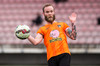 Flott fyrirgjöf endar á kollinum á Garðari Jó sem á fínan skalla en Stefán Logi ver vel.
