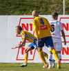 Gunnar Már með annan skalla á Derby Carrillo. Fjölnismenn aðeins að láta finna fyrir sér.