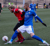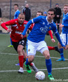 Nik Anthony Chamberlain kemst í fínt færi rétt innan teig sen skotið hans fer rétt framhjá.