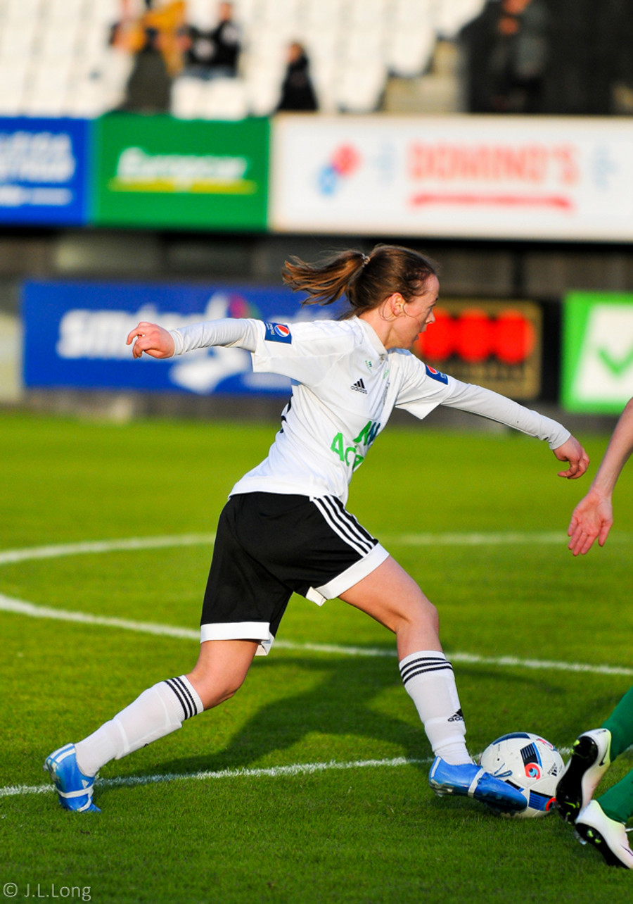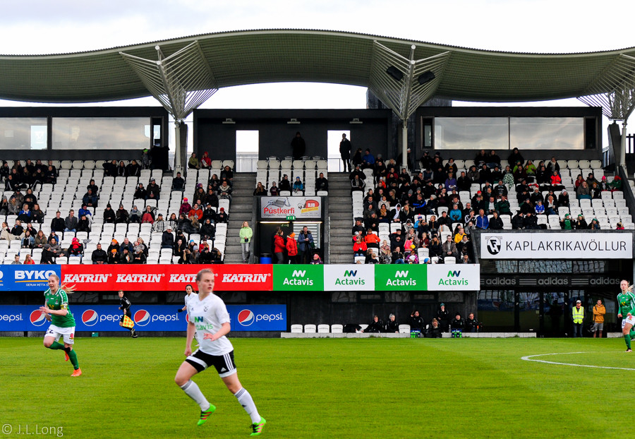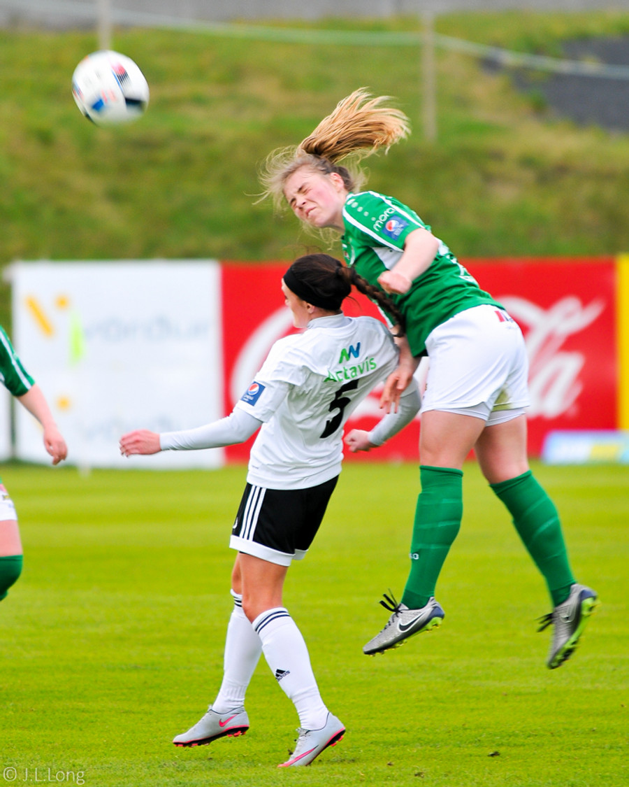 Þarna hélt ég að kæmi mark!! Fanndís með hörkuskot í vinstrahornið sem Jeannette ver glæsilega!