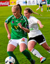 Það liggur mark í loftinu hjá Blikum í augnablikinu. Rakel Hönnu með sendingu inn fyrir en Jeannette er á undan Esther í boltann.
