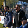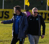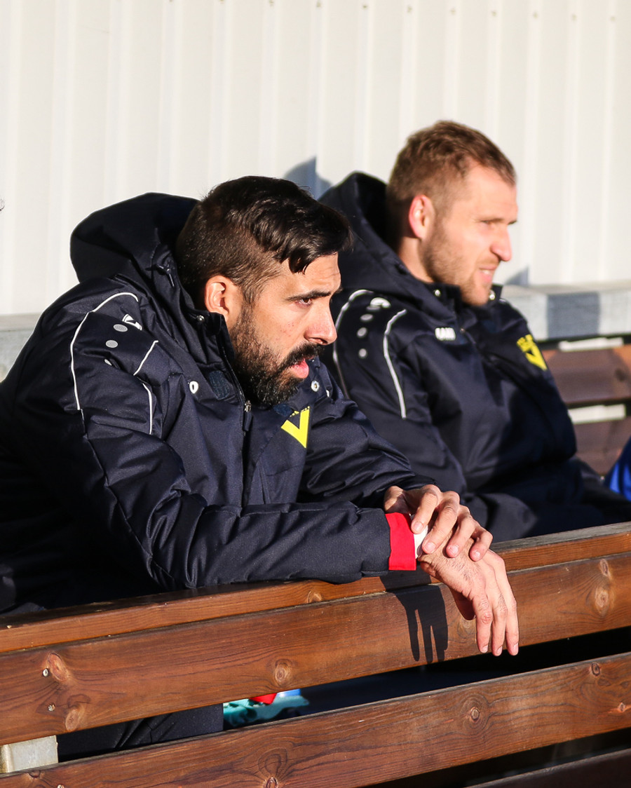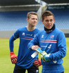 Þorsteinn Már og Alfreð Már hita kröftuglega upp undir handleiðslu aðstoðarþjálfara Víkings. Gerir Ejub breytingar strax í hálfleik?
