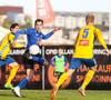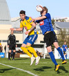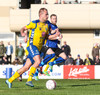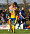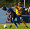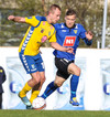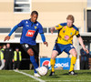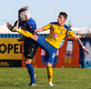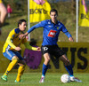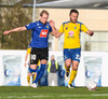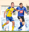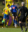 Marcus Mathiasen kemst upp hægri vænginn og gefur fyrir en Einar Hjörleifs er vel á verði og slær boltann í burtu.