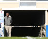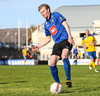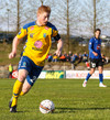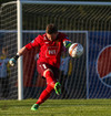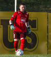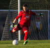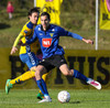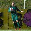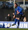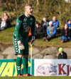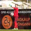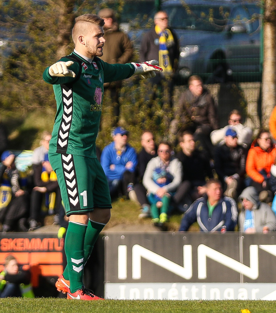 Gunnar Már, sem spilar í holunni hjá Fjölni, á fyrsta skot leiksins. Hitti ekki rammann.