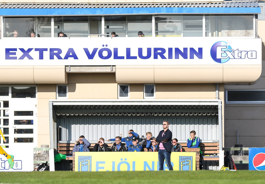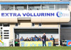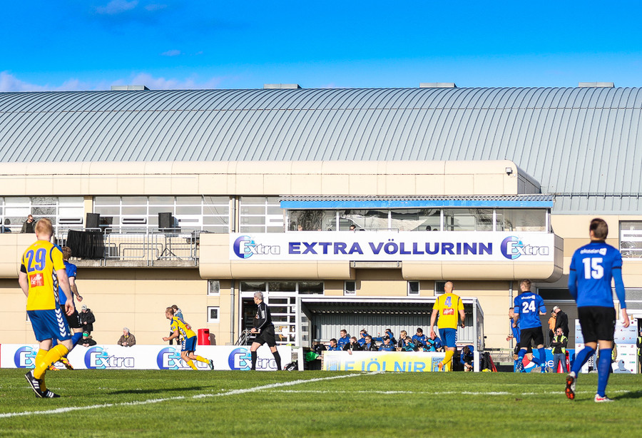 Vallarþulurinn tilkynnir nýtt nafn Fjölnisvallar. Hann mun heita Extra-völlurinn héðan í frá.