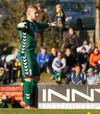 Dauðafæri! Kenan á tekur boltann viðstöðulaust á lofti eftir fyrirgjöf frá Pontus en Steinar Örn blakar boltanum í horn.