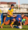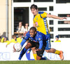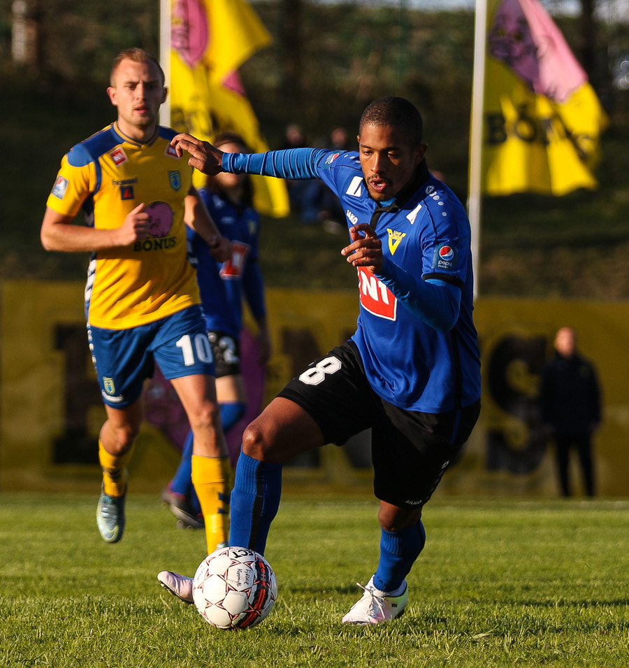 Fyrsta gula spjald dagsins. Igor brýtur á William út á miðjum velli.