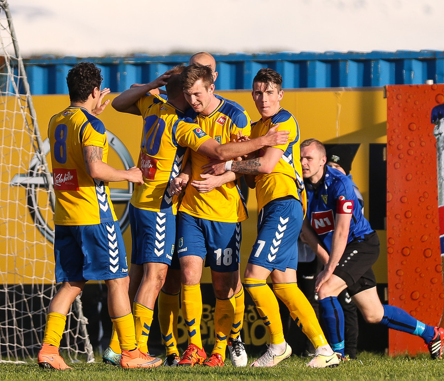 Leikurinn fór rólega af stað en smám saman fóru heimamenn að taka yfirhöndina. Eftir að Martin Lund skoraði fyrsta mark leiksins hefur bara verið eitt lið á vellinum. Víkingar ekki enn skapað sér færi. Þeir hafa varla náð heppnaðri sendingu á síðasta þriðjungi vallarins.