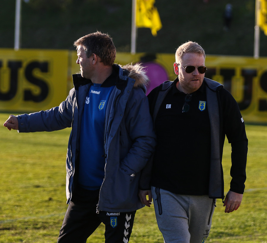 Fjölnisliðið leyfir gestunum að spila boltanum á milli sín í öftustu línu en setja pressu á þá um leið og þeir nálgast miðjuna. Sjálfstraustið í liði Ólsara er augljóslega mikið og þeir eiga ekki í sérstökum vandræðum með að spila sig í gegnum lágpressu heimamanna.