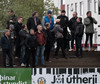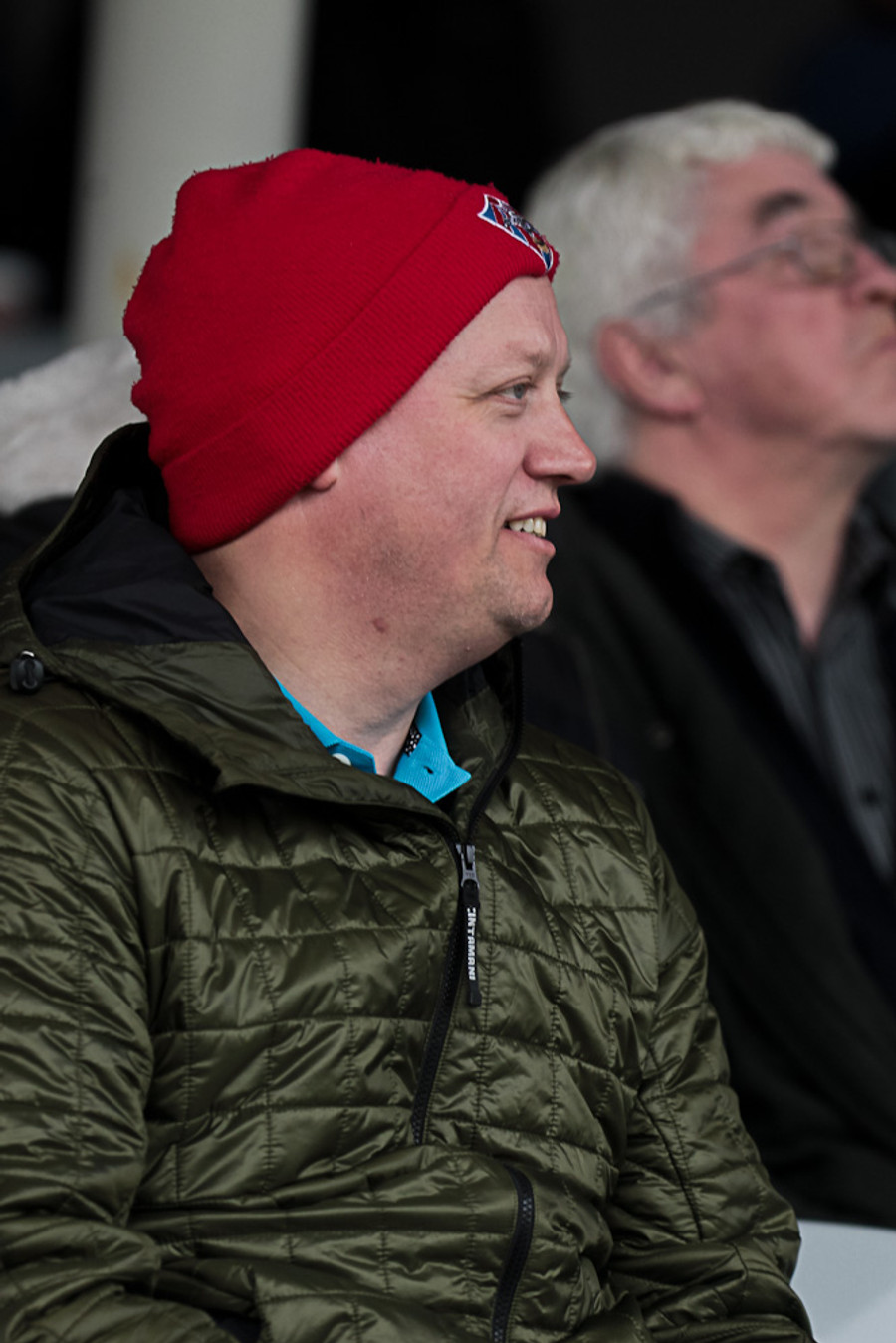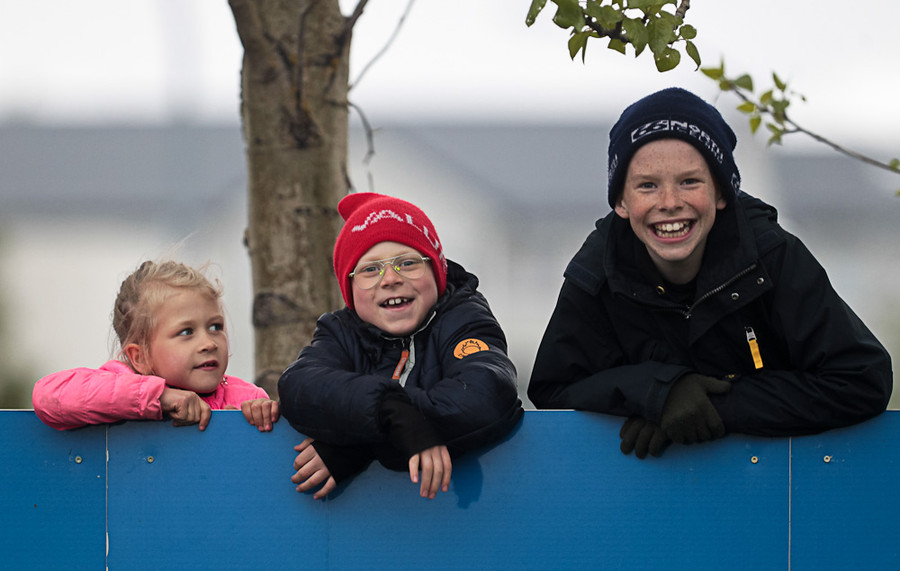 Farið að tínast í stúkuna.