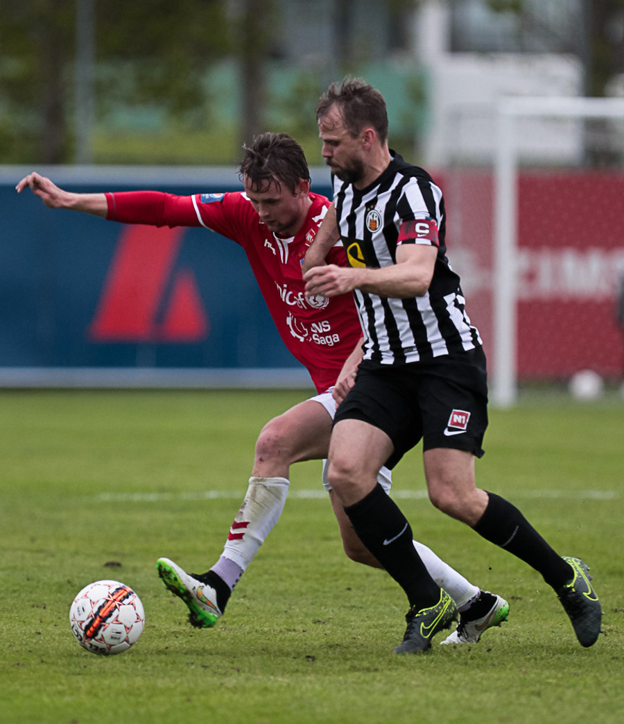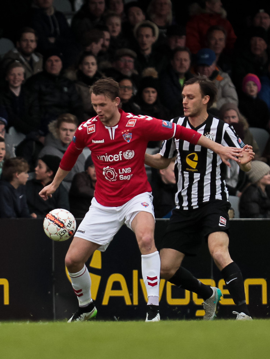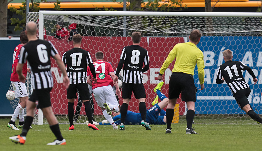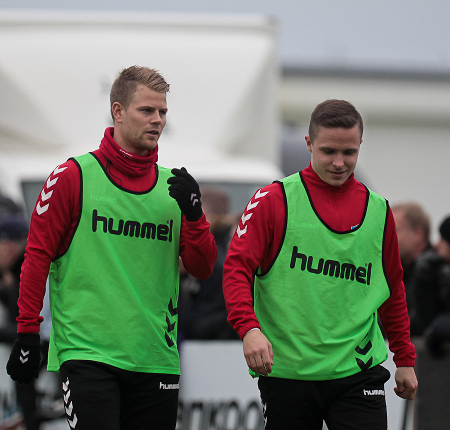 Andersen reyndi hér að vippa yfir Anton utan teigs og tókst næstum því.