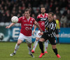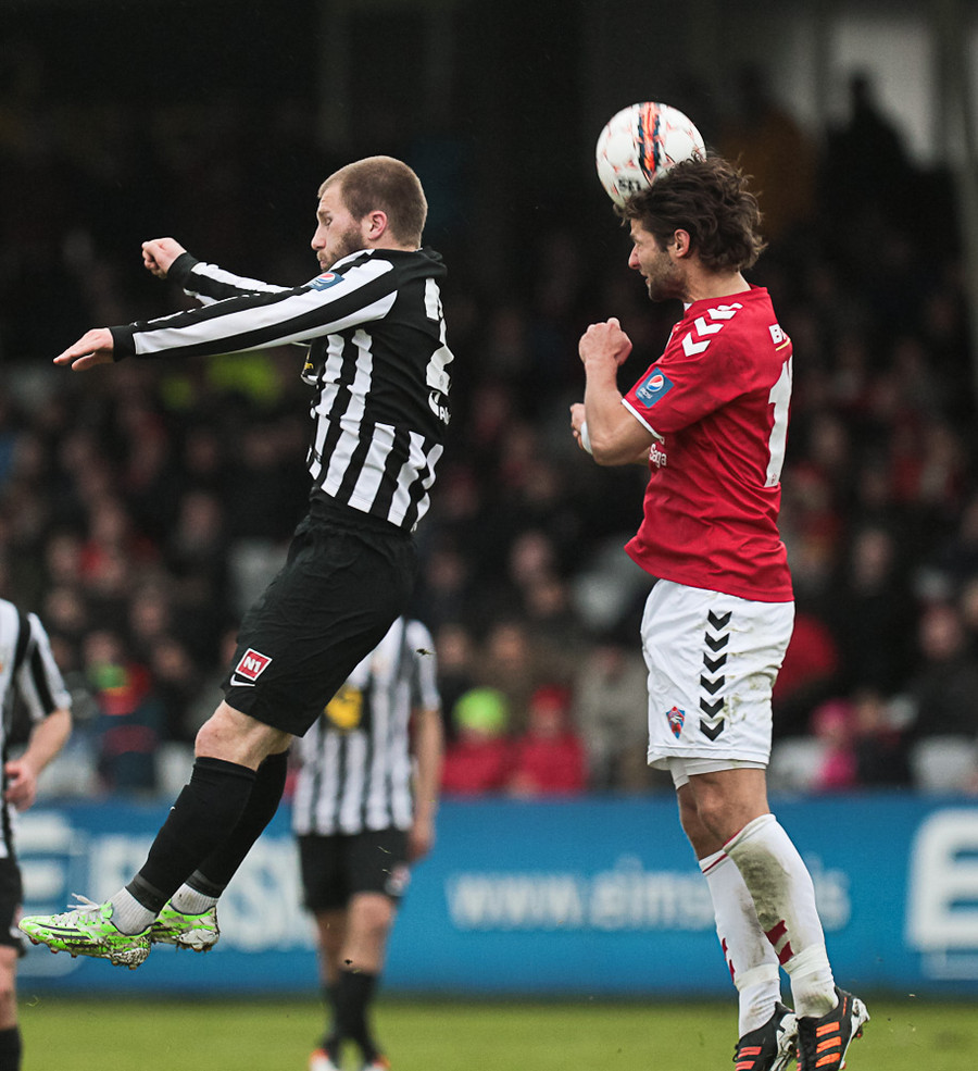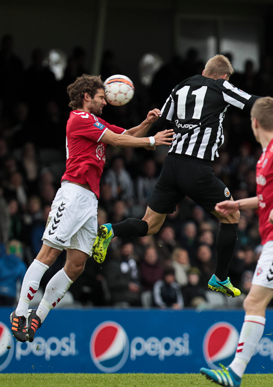 Valsmenn sækja upp vinstri vænginn hér trekk í trekk. Aukaspyrnu fengu þeir hér og hún fór beint á koll Hauks en skallinn beint á Stefán Loga.