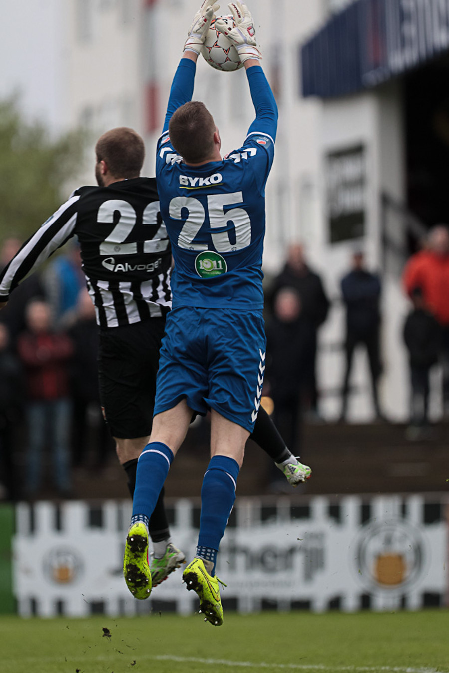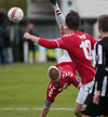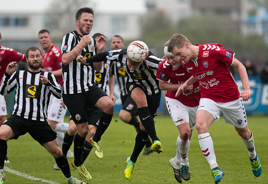 Haukur Páll reynir hér hjólhestaspyrnu úr teignum en hittir ekki nægilega vel og boltinn framhjá.
