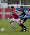 Denis á ferð, fyrst góð sending inn í teig sem Anton hirðir og svo vondur skalli hans til baka sem býr næstum til hættu en Stefán nær að' hreinsa í innkast.
