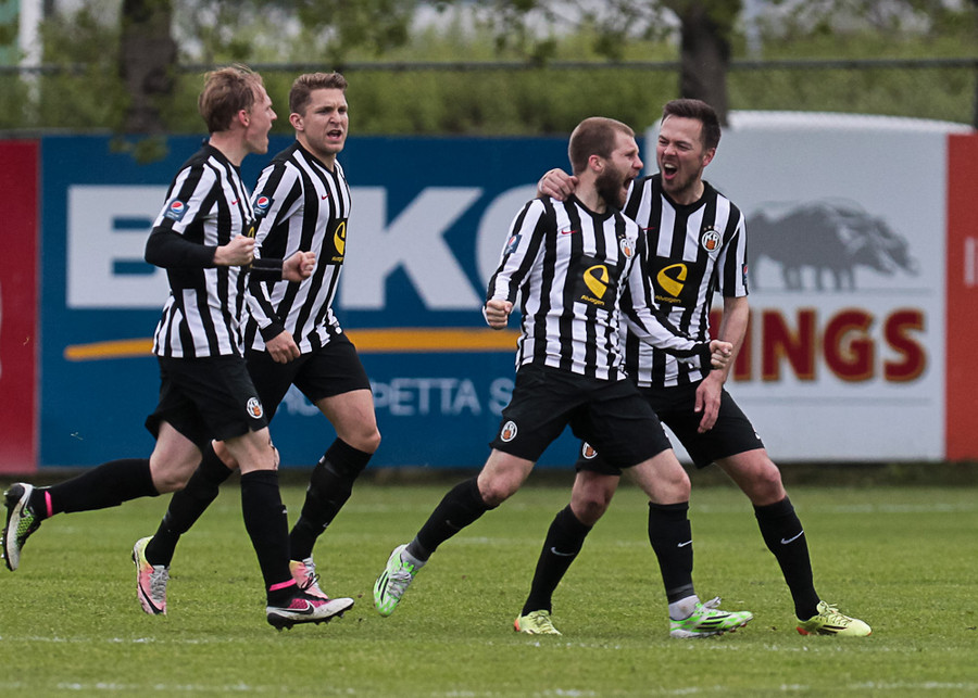 Kristinn Freyr vann sig í gegnum vörnina og skaut af markteignum en Stefán Logi varði út í teig með fótunum...þar barst boltinn til Sigurðar Egils sem skaut í stöng.
