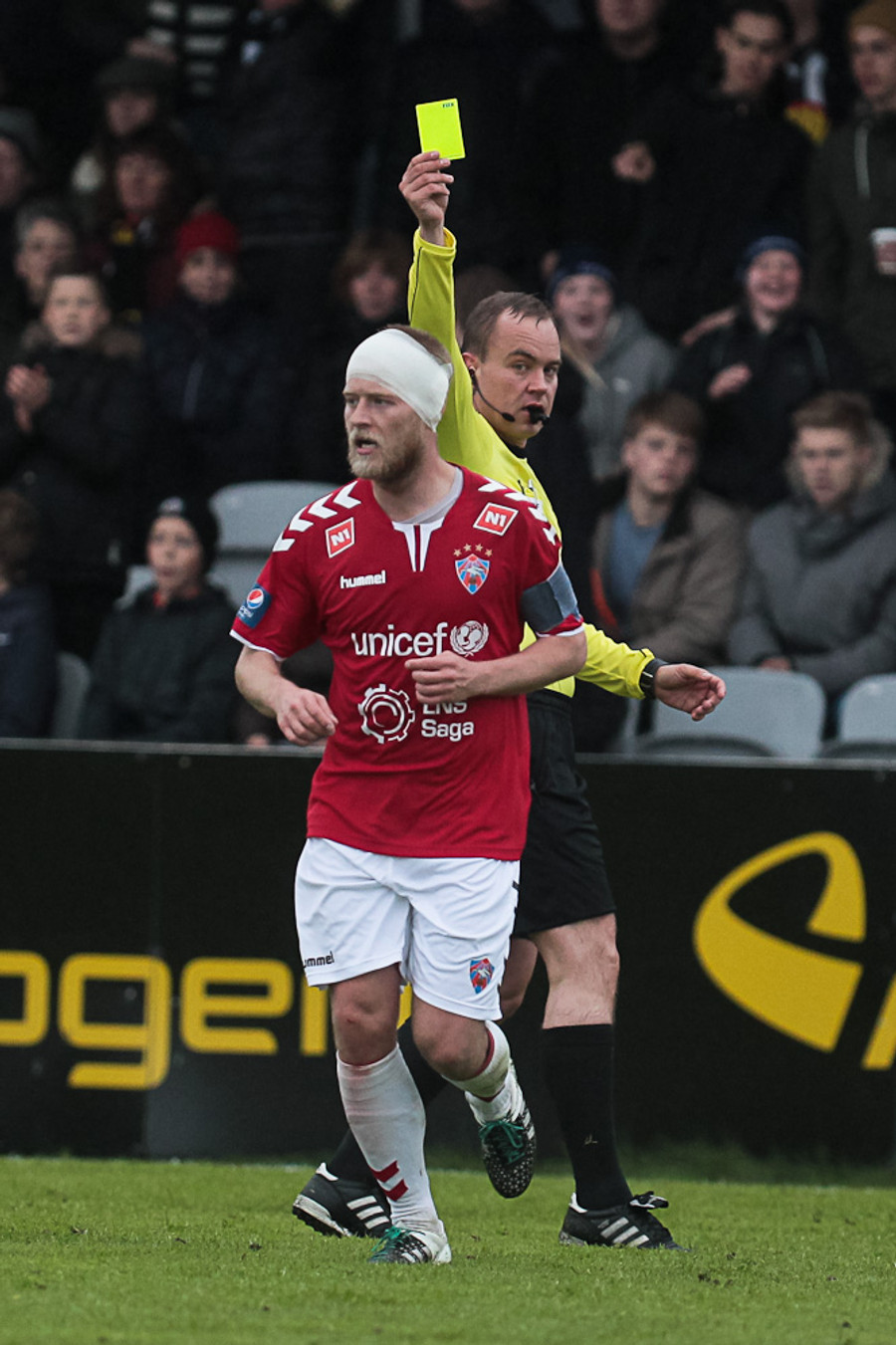 Hér fær Haukur appelsínugult spjald.