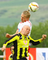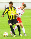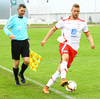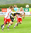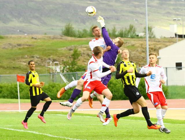 Birkir vinnur boltann og sendingu á Svein Elías sem setur boltann fyrir. Þarna mátti litlu muna að Jóhann Helgi næði til boltans