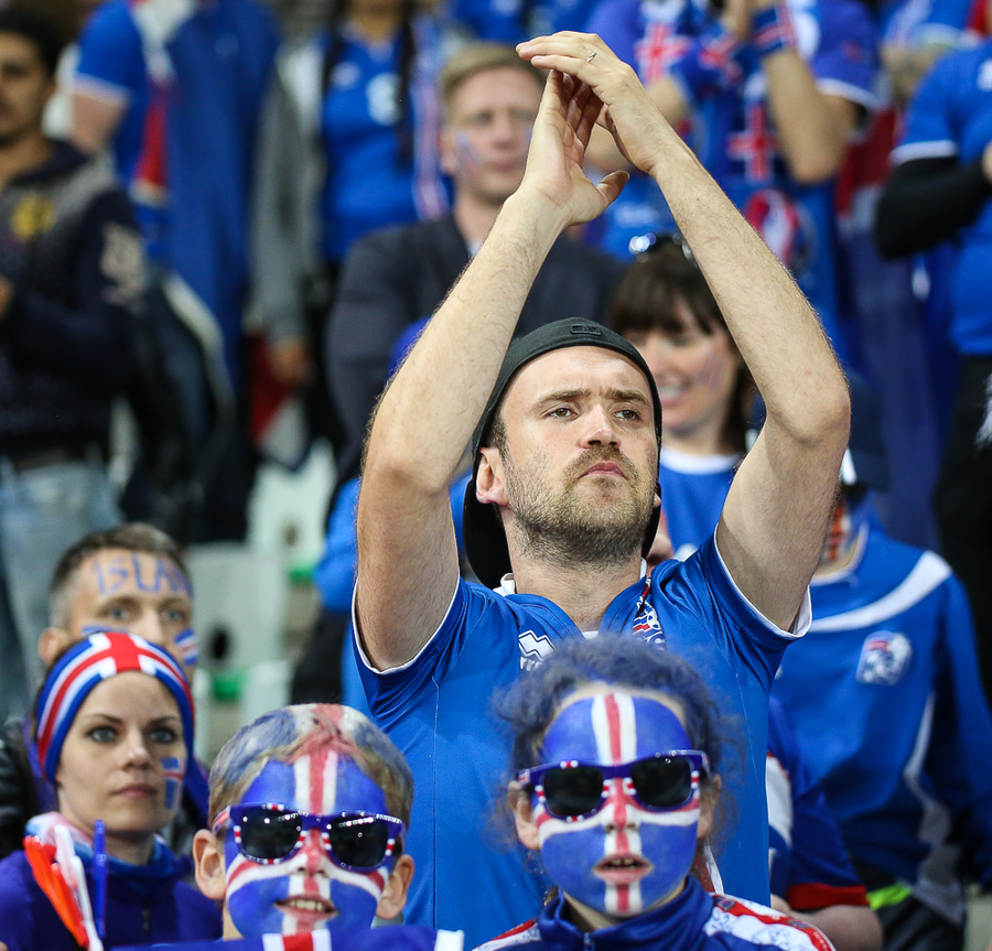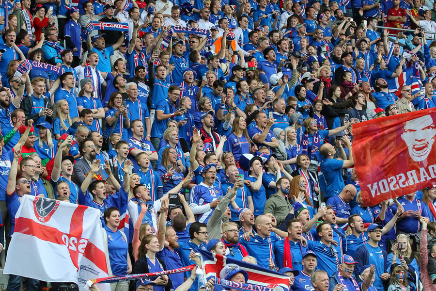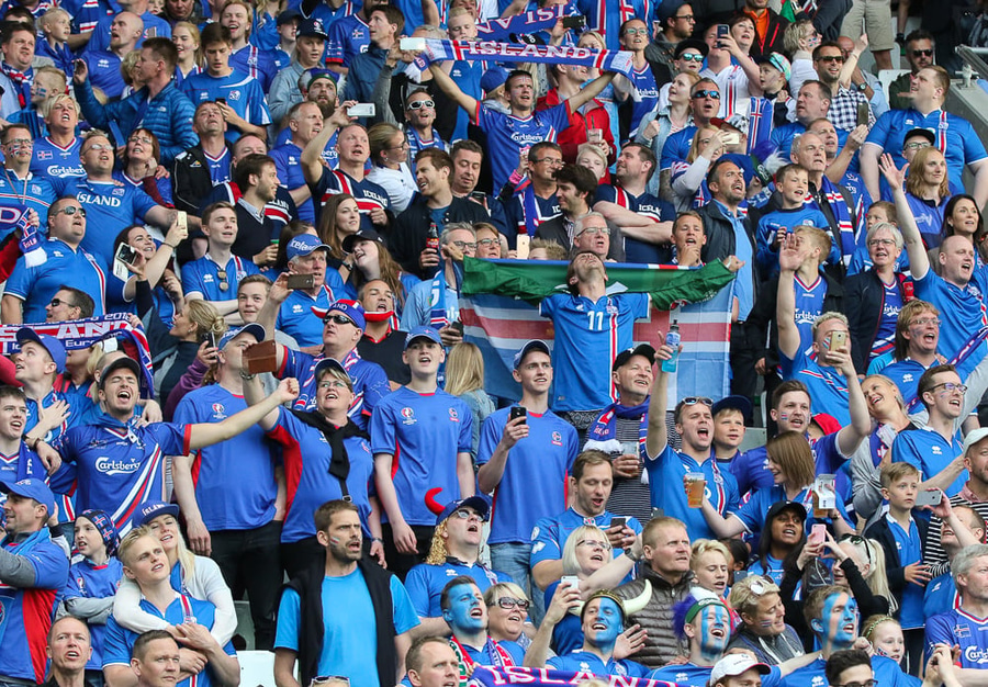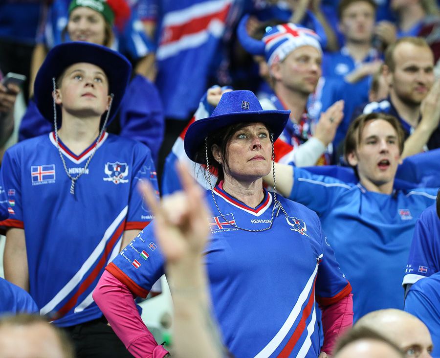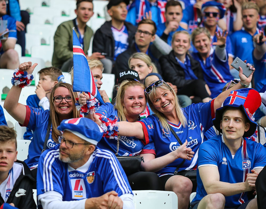 Íslendingarnir verið meira áberandi hingað til í stúkunni. Ef við vinnum ekki leikinn, þá getum við allavega verið viss um að hafa pakkað þeim saman í stuðning.