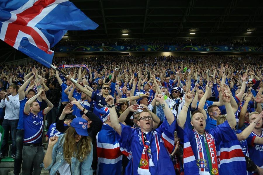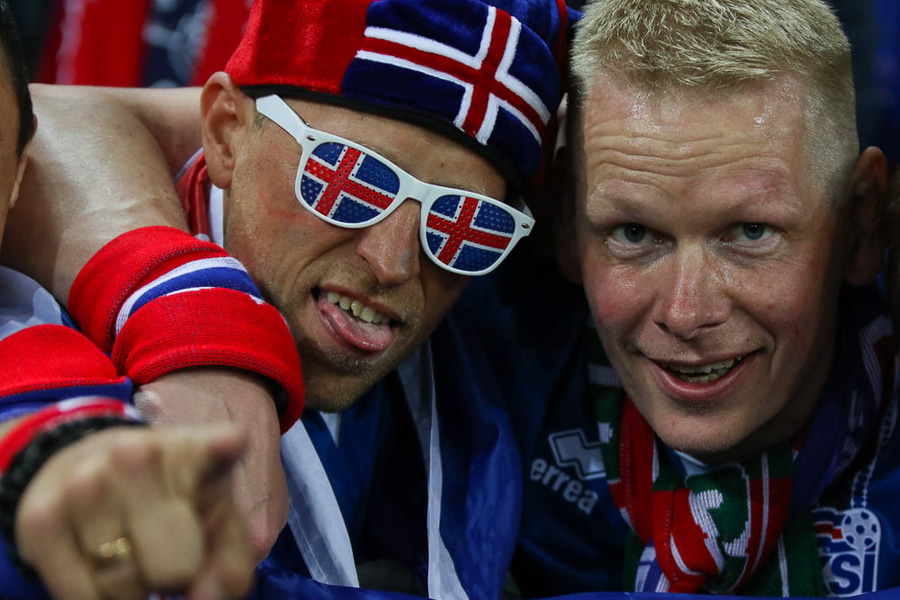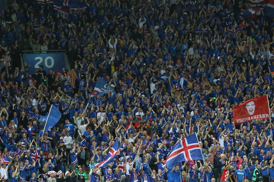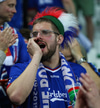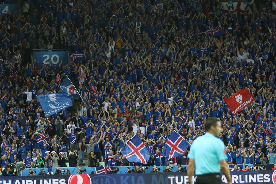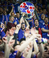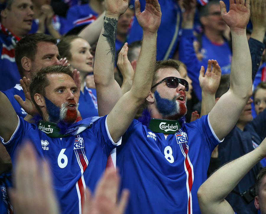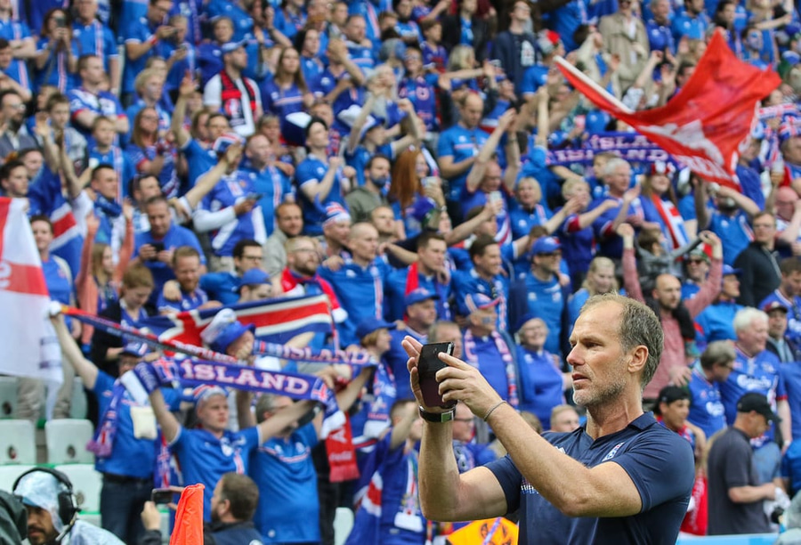 Íslendingarnir verið meira áberandi hingað til í stúkunni. Ef við vinnum ekki leikinn, þá getum við allavega verið viss um að hafa pakkað þeim saman í stuðning.