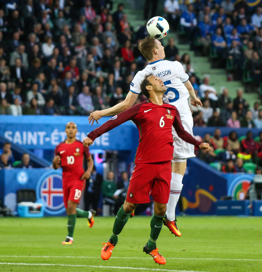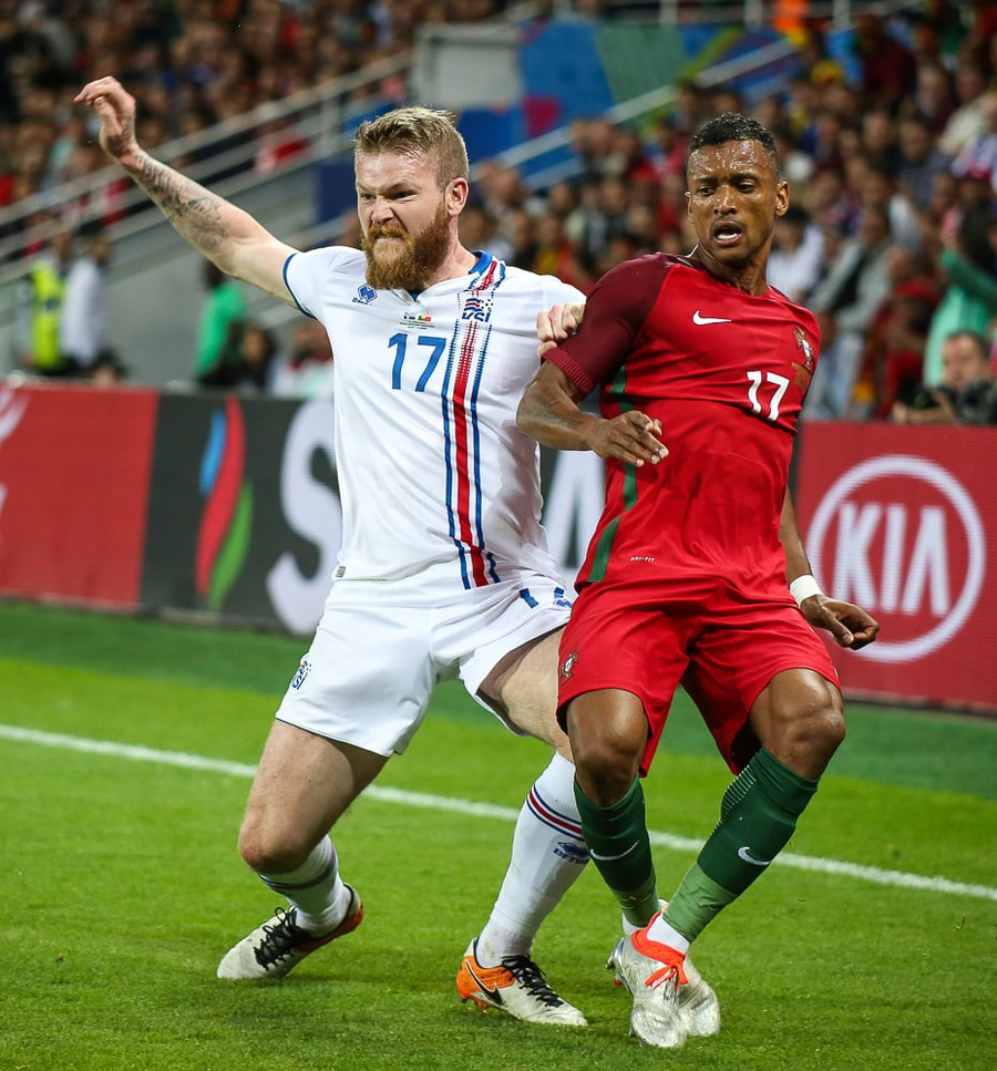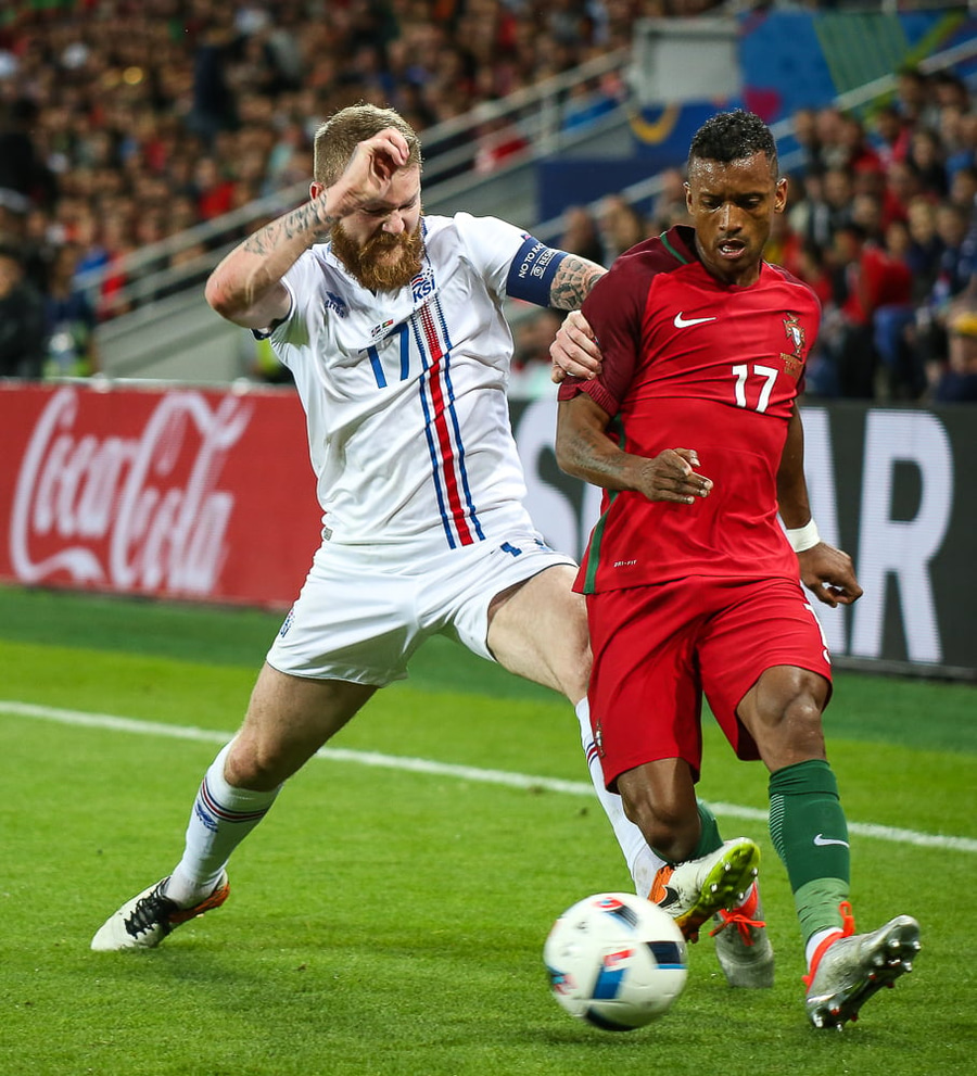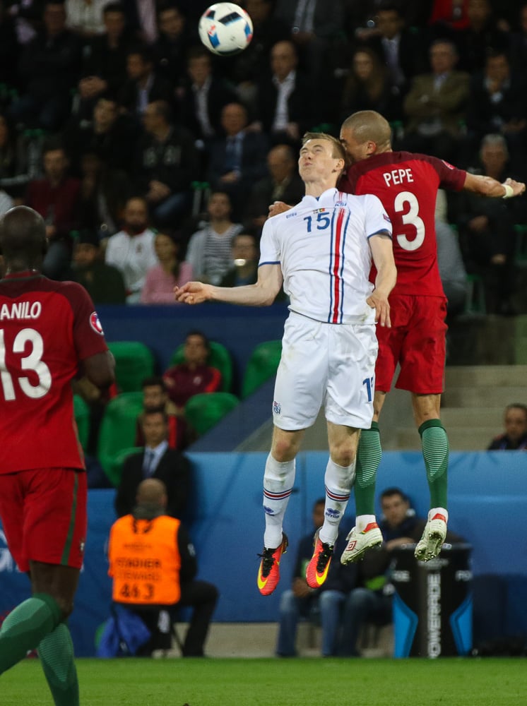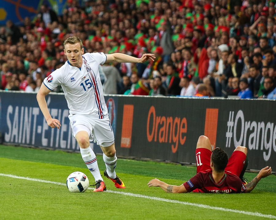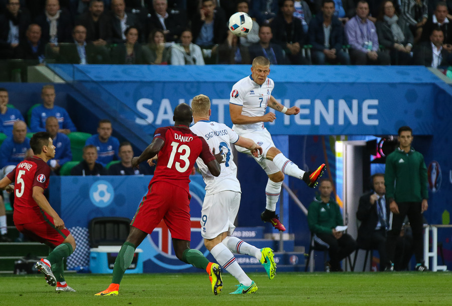 Renato Sanches með hættulega fyrirgjöf en Aron Einar er mættur að bjarga, enn og aftur. Einn af hans betri landsleikjum.