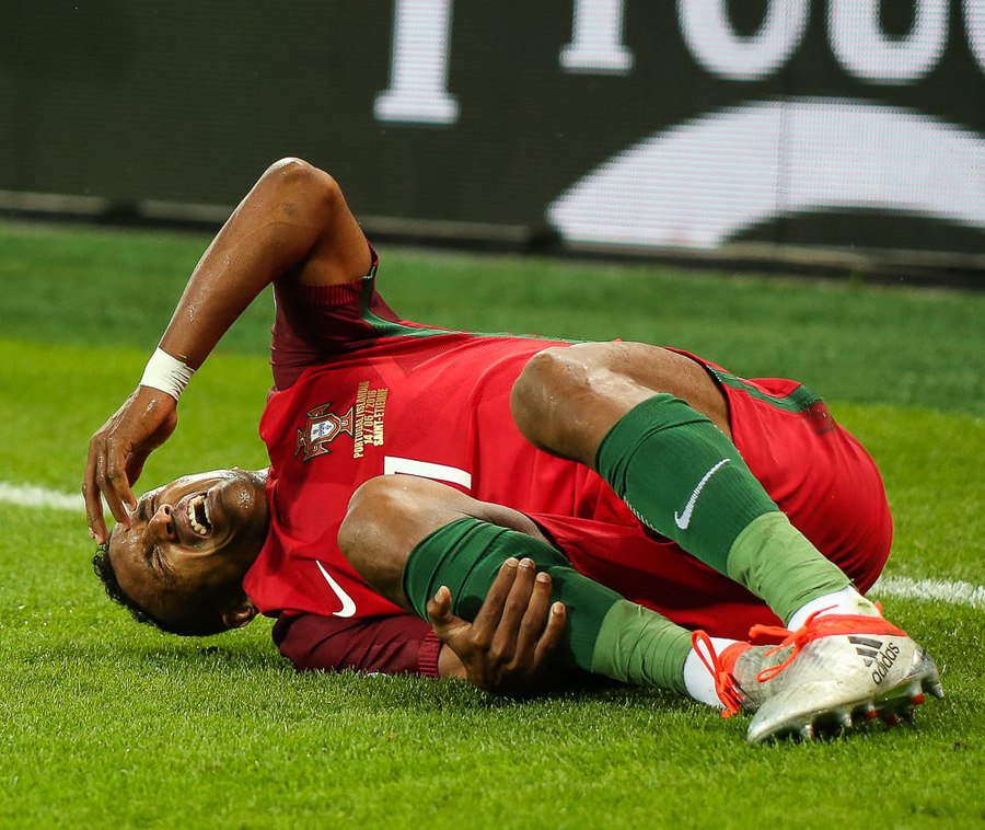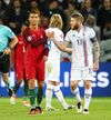 Ronaldo við það að komast í skotið en hann dettur á rassinn og er svo brjálaður yfir því að fá ekki aukaspyrnu.