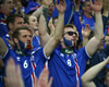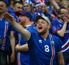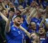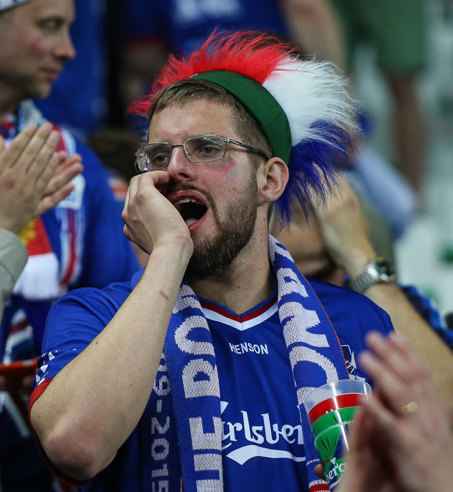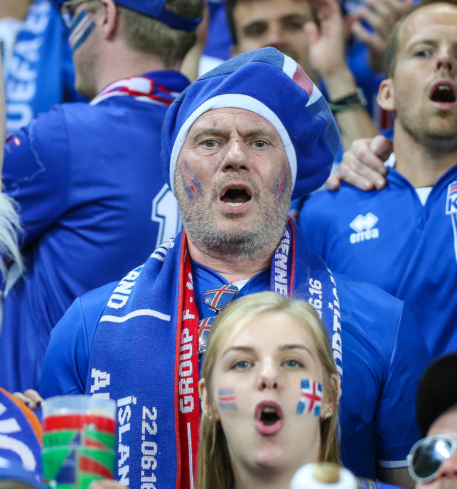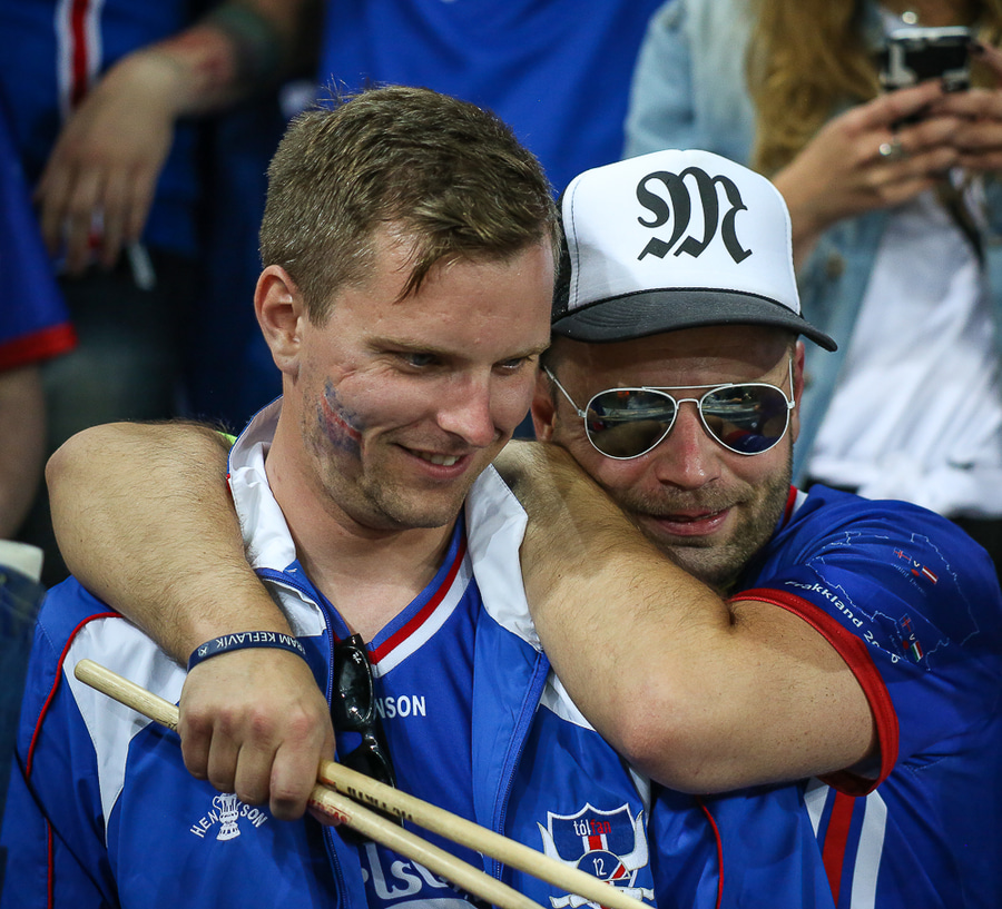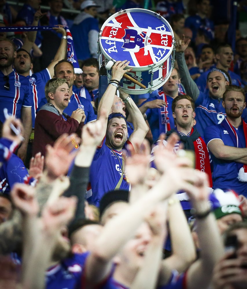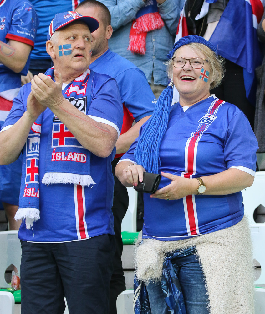 Stuðningsmenn Portúgala þegjandi og áhyggjufullir. Stuðningsmenn Íslendinga háværir og í brjáluðu stuði.
