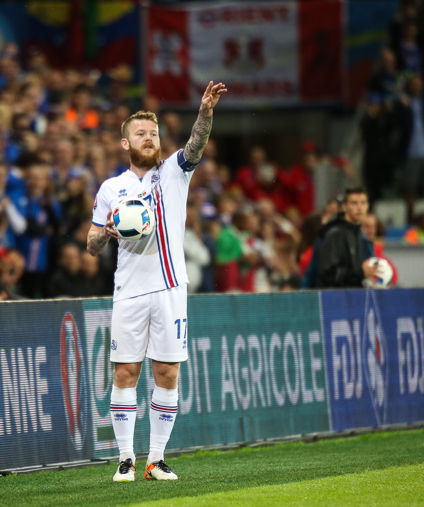 Aron Einar er búinn að vera alls staðar í þessum leik. Þvílíkur fyrirliði.