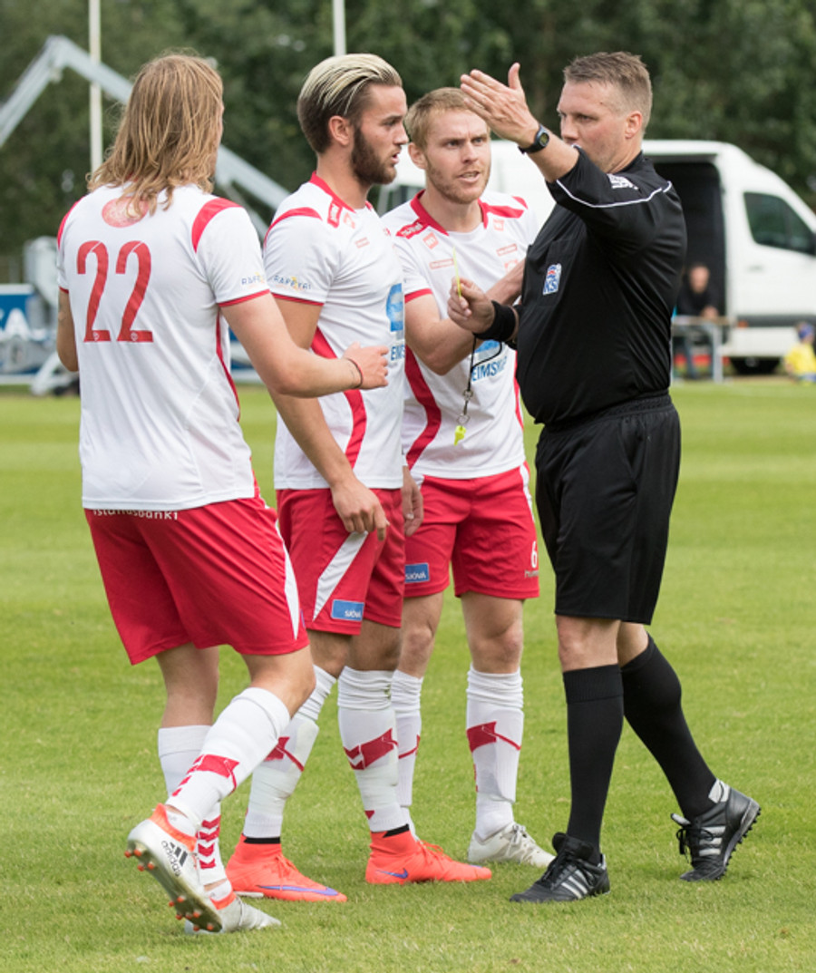 Lögreglumaðurinn Pétur Guðmundsson fær það erfiða verkefni að dæma leikinn í dag. Honum til aðstoðar verða Smári Stefánsson og Þórður Arnar Árnason