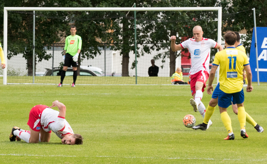Loftur með frábæran varnarskalla. Juraj kemst inn í teig og á fyrirgjöf sem stefnir beint á Elfar Árna áður en Loftur kemst fyrir og skallar frá