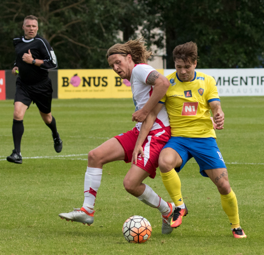 Tvær hörkutæklingar í röð. Fyrst Jónas á Hallgrím og svo Ármann Pétur á Aleksandar Trninic.