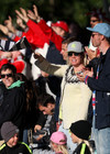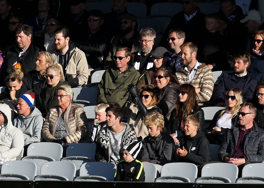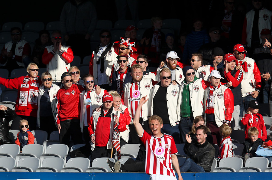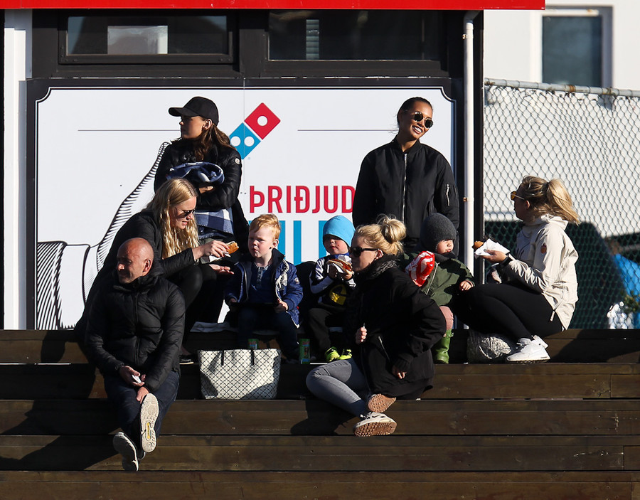Stúkan er frekar þunn. Vonum að það fjölgi aðeins á næstunni. Íslenskir áhorfendur eru líka ekkert þekktir fyrir að mæta tímanlega á völlinn.