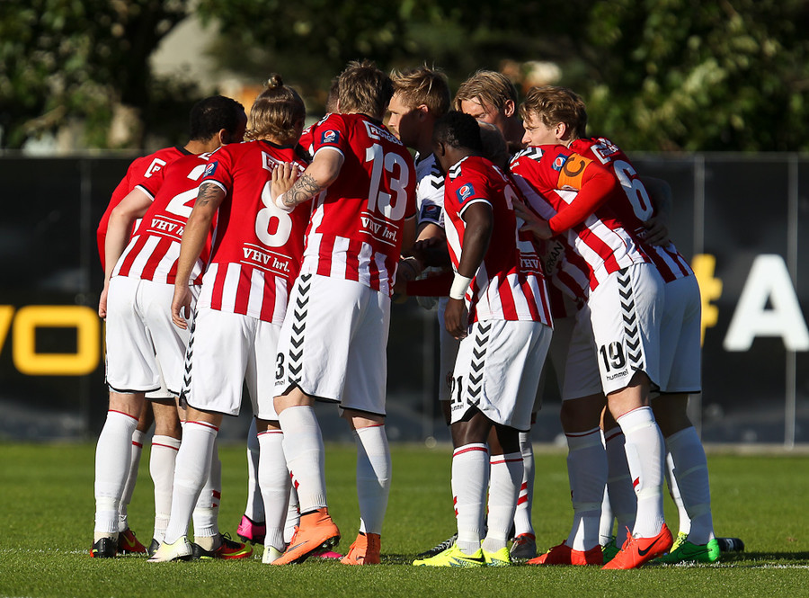 Óskar tekur aukaspyrnuna og af stað fer mikið klafs í teignum. Jeppe Hansen fær boltann af sláni og í lappirnar á marklínunni og skorar að sjálfsögðu.
