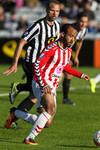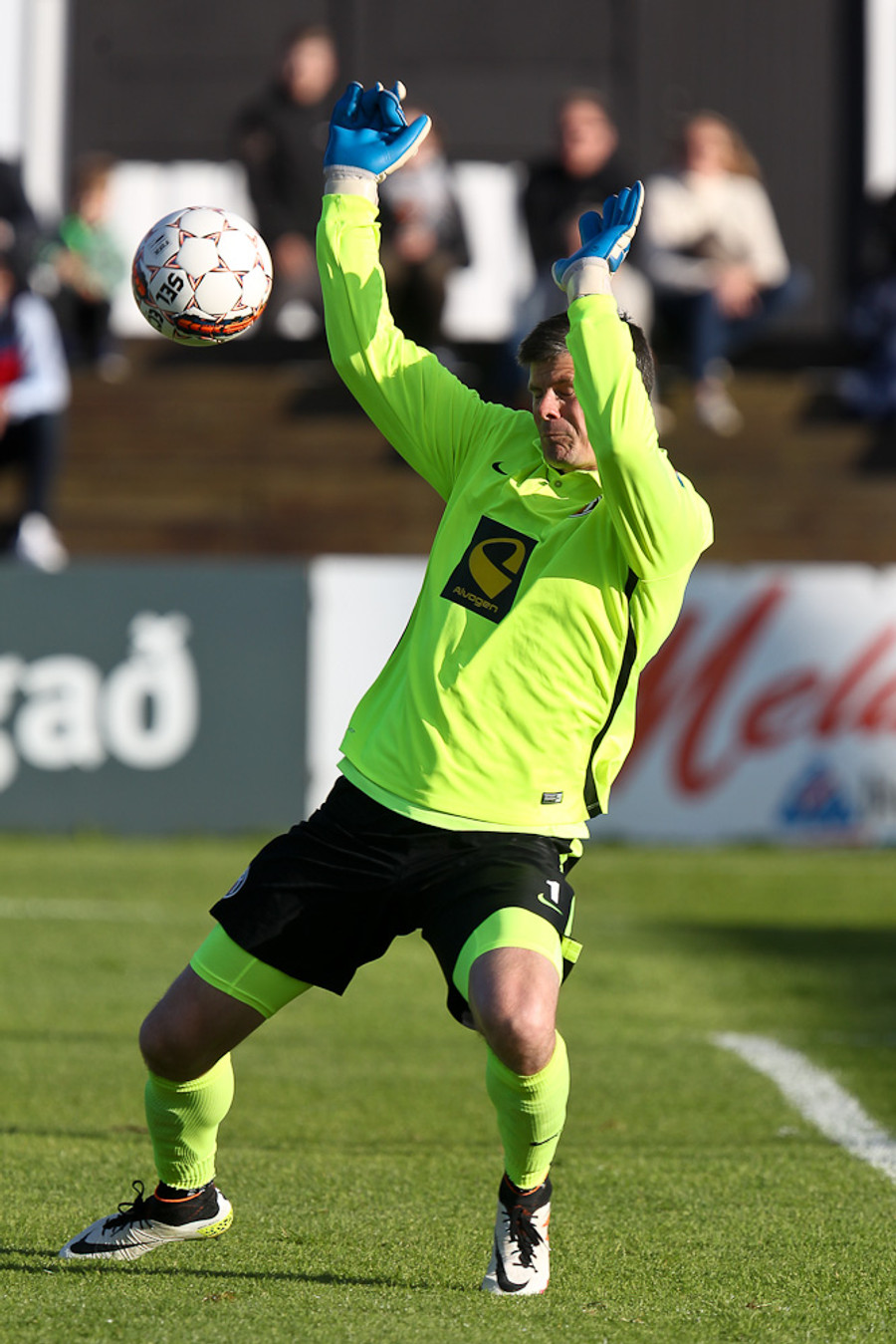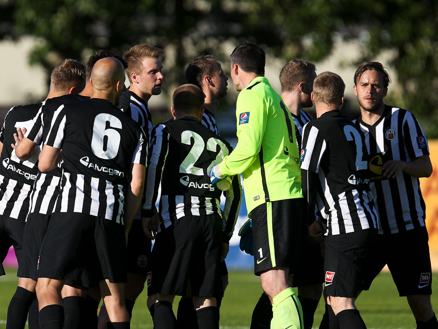 Fyrsta hornspyrna leiksins kemur hér strax eftir 30 sekúndur. Það er Christan Sörensen sem tekur hana en Stefán Logi öruggur og grípur hana.