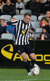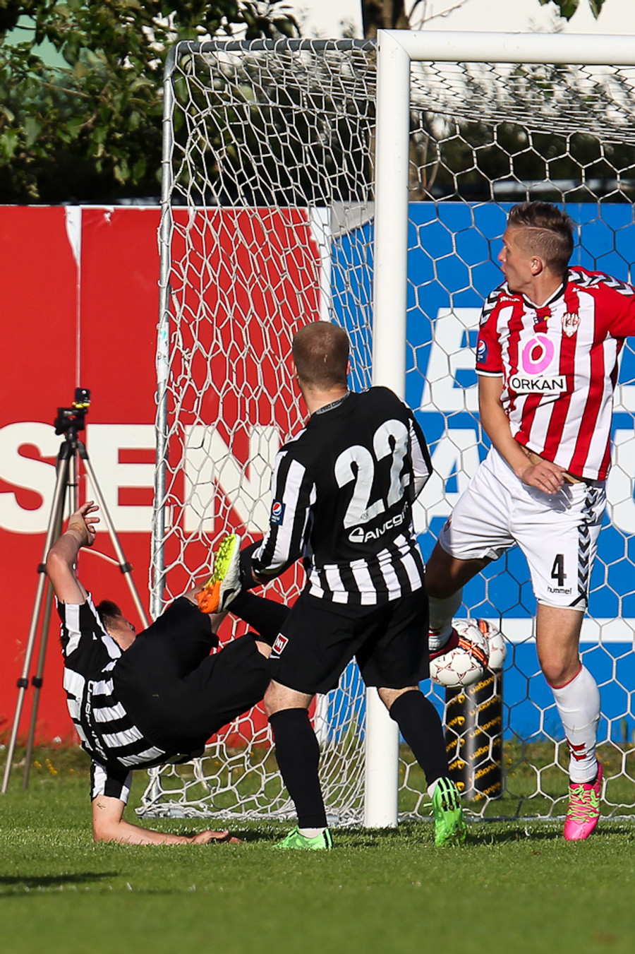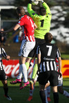 Sem og hann gerir. Boltinn berst yfir á hinn kantinn þar sem að Kennie Chopart er. Hann sendir hann fyrir á Jeppann sem hittir hann illa sem Trausti á í engum erfiðleikum með að verja.
