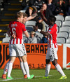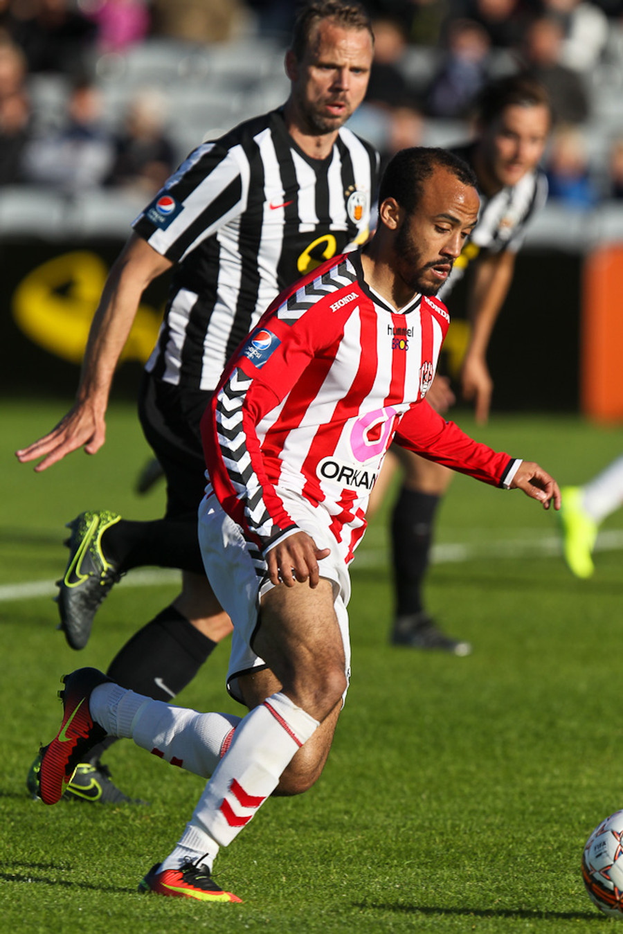 Pálmi Rafn ótrúlega nálægt því að reka tána í boltann eftir fyrirgjöf Jeppe.