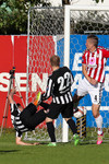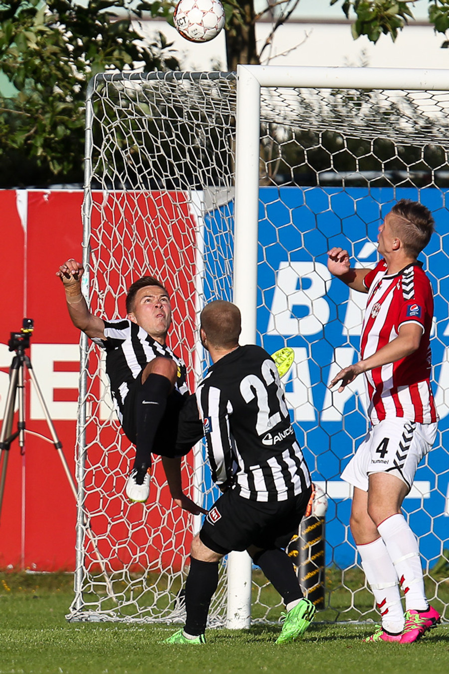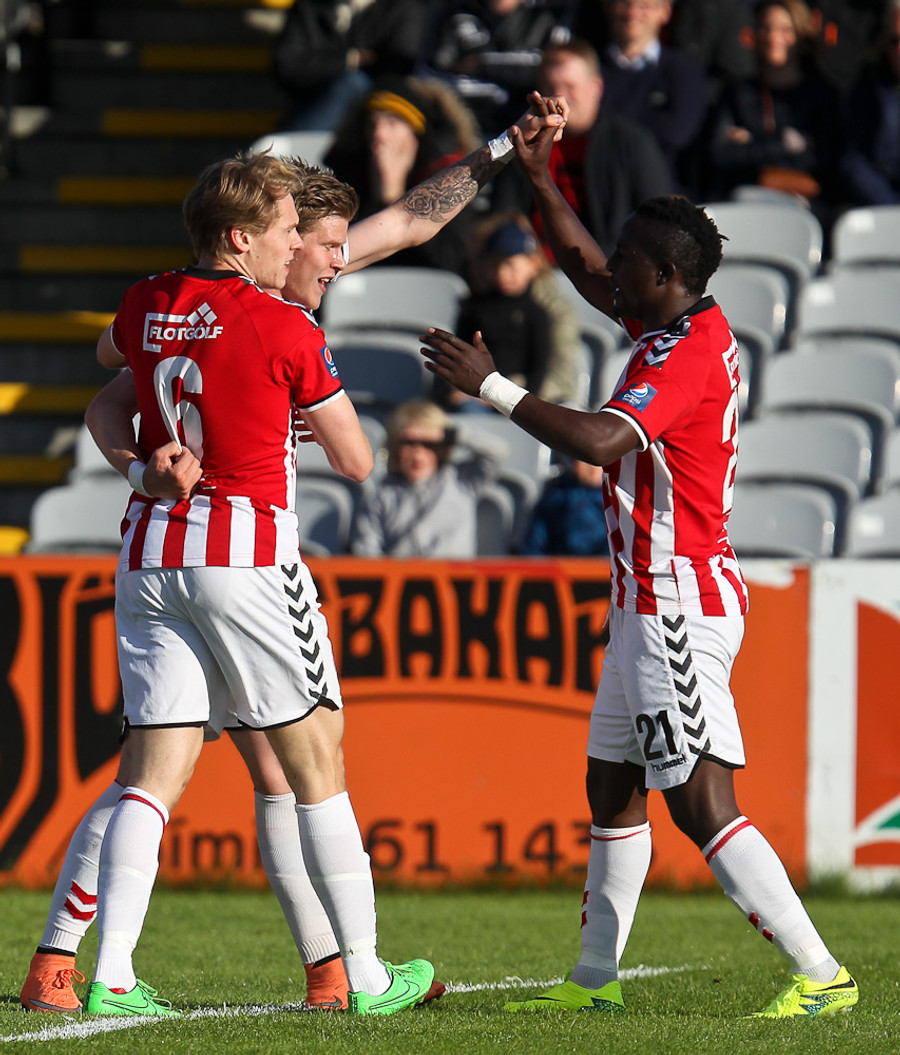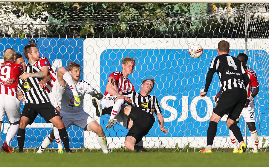 Baldvin Sturluson skallar boltann rétt yfir markið eftir fyrirgjöf frá Christian Sörensen sem var alveg einn í heiminum á hægri kantinum.