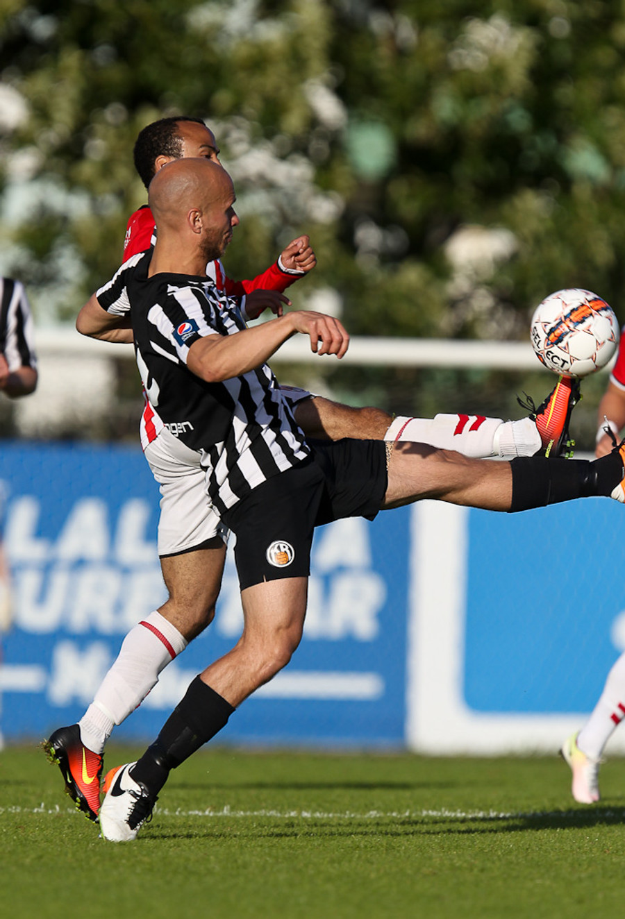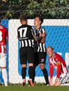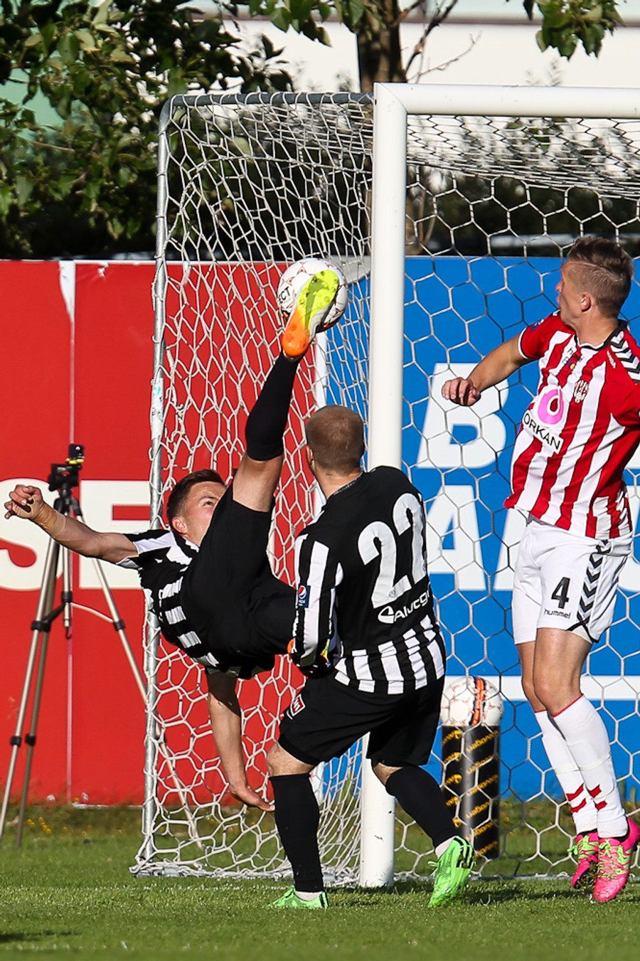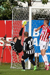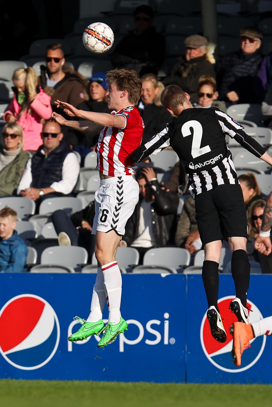 Baldvin Sturluson skallar boltann rétt yfir markið eftir fyrirgjöf frá Christian Sörensen sem var alveg einn í heiminum á hægri kantinum.