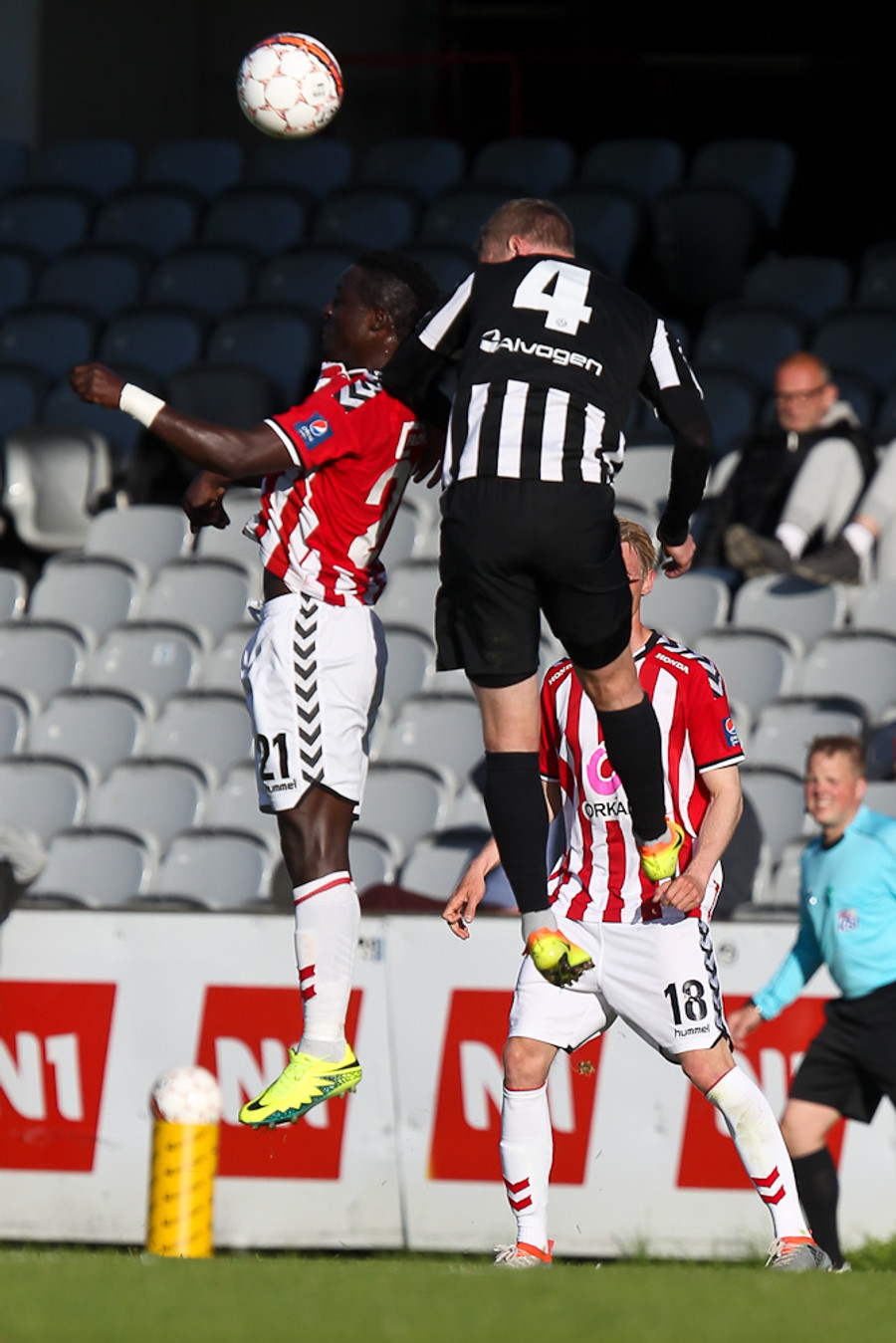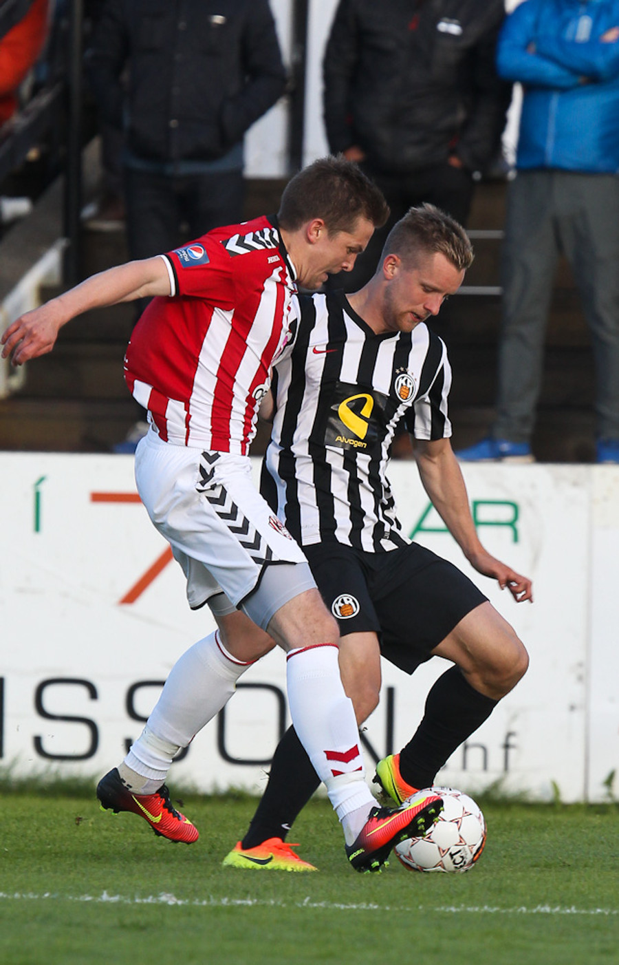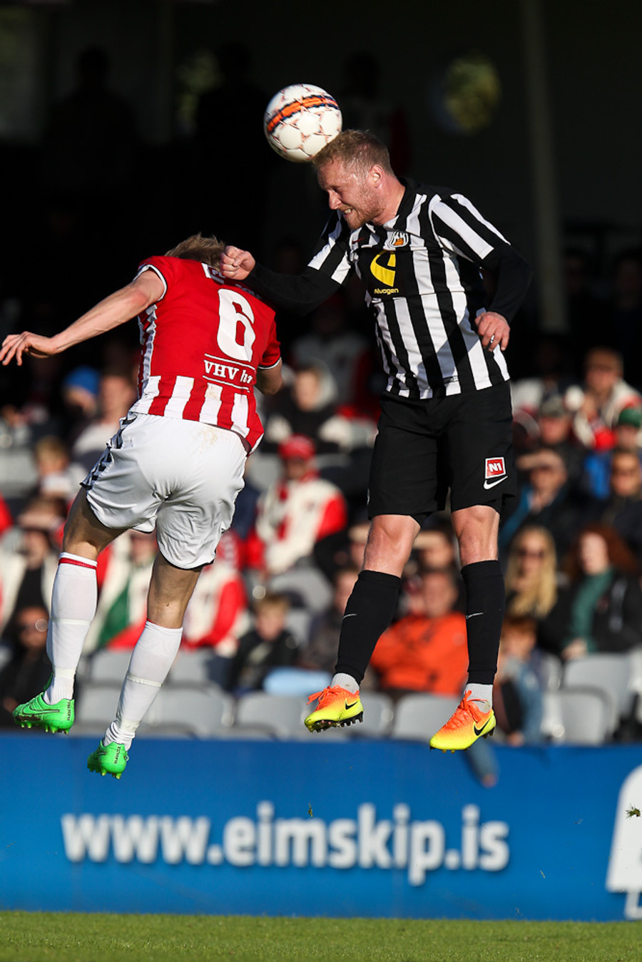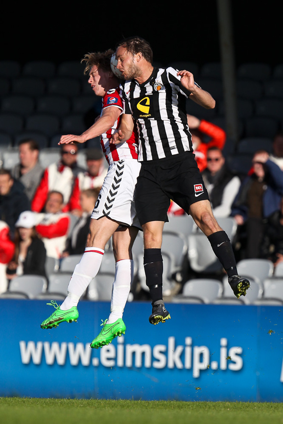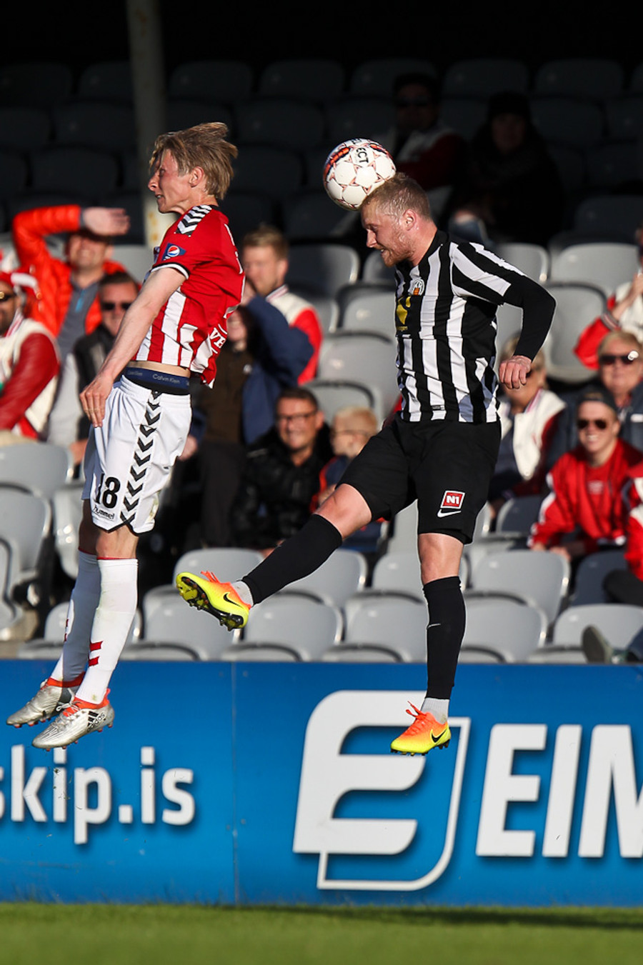 Heimamenn eru að sækja í sig veðrið. Air Canada hoppar manna hæst í teignum og skallar fyrirgjöf Gunnars Þórs yfir markið.