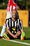 Pámi Rafn virðist hafa misstigið sig og leggst niður. KR-ingar sparka boltanum útfyrir svo að Pálmi geti fengið aðhlynningu.