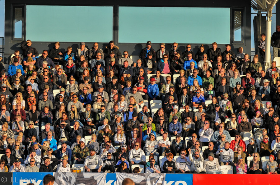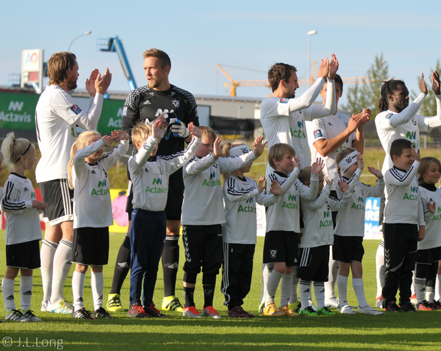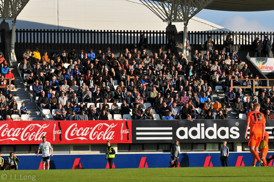 Völlurinn lítur vel út og það er fólk farið að týnast í stúkuna. Sól og smá gola. Allt til staðar fyrir fínan leik!