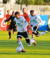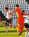 Aukaspyrna af vinstri kantinum á fjærstöng á Indriða Sigurðsson. Indrið nær máttlitlu skoti eftir baráttu við Davíð Þór Viðarsson. Indriði vill meina að Davíð hafi hrint sér en fær ekkert fyrir sinn snúð.