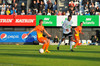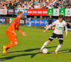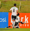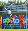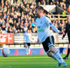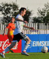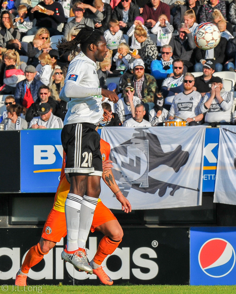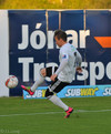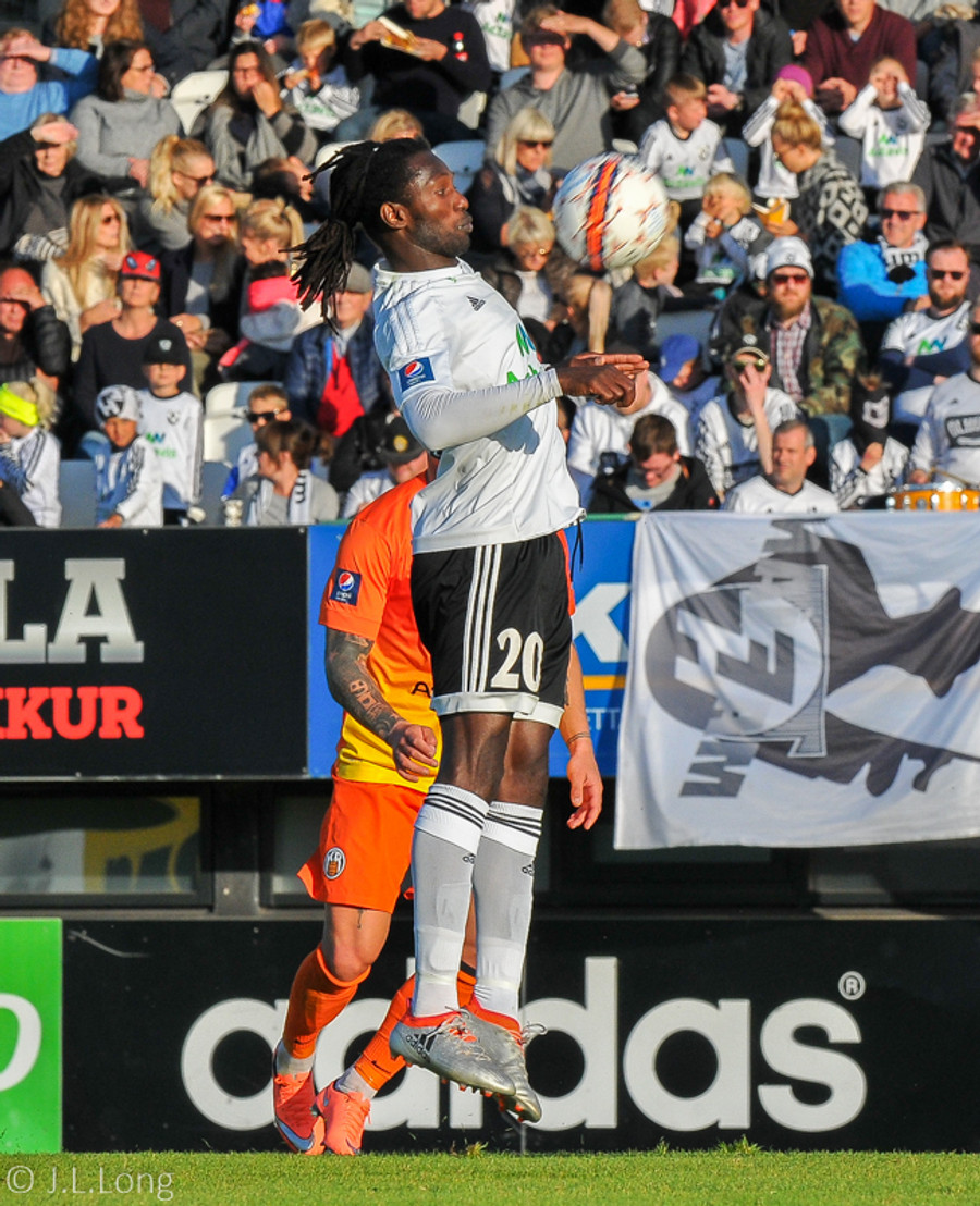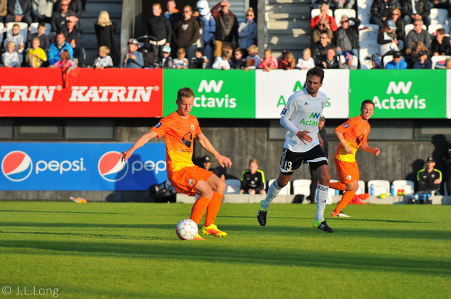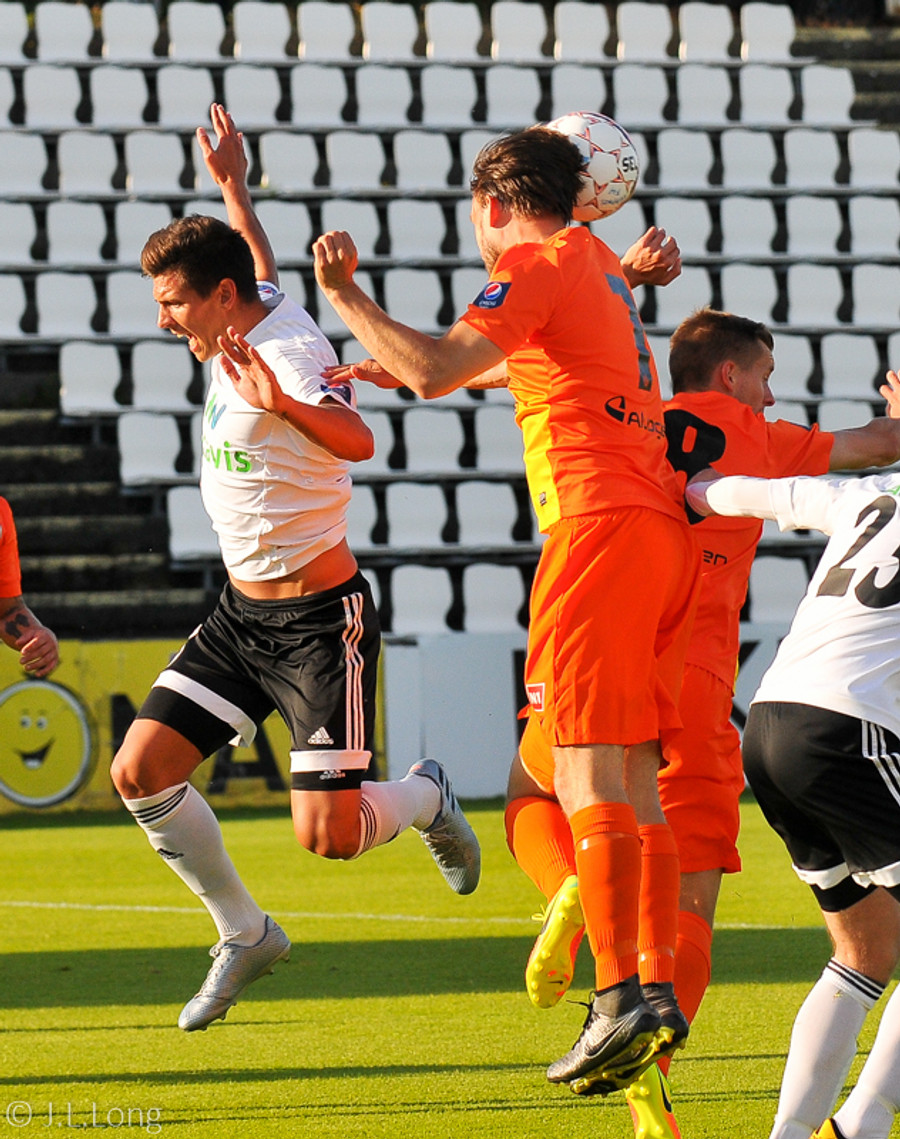 Jeppe Hansen á fyrstu marktilraunina en hann er í engu jafnvægi þegar hann lætur vaða af 30 metrunum. Laflaust skotið fer líka út á kant!