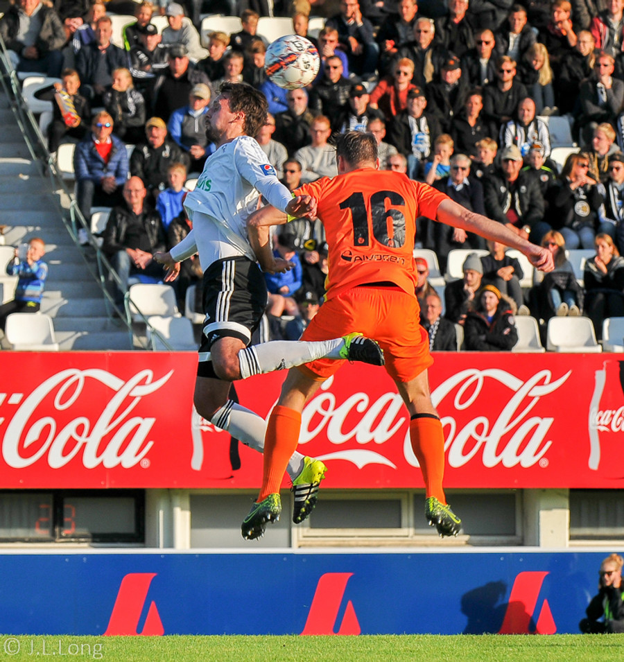 KR-ingar með hættulega hraða sókn. Morten Beck sendir fyrir á Jeppe sem nær ekki skotinu. Bergsveinn gerir vel í að loka á Jeppe og færið rennur út í sandinn.