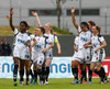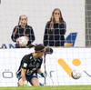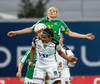 Rakel Hönnudóttir skallar hornspyrnu Fanndísar yfir. Ekki mikil hætta á ferðum þarna.